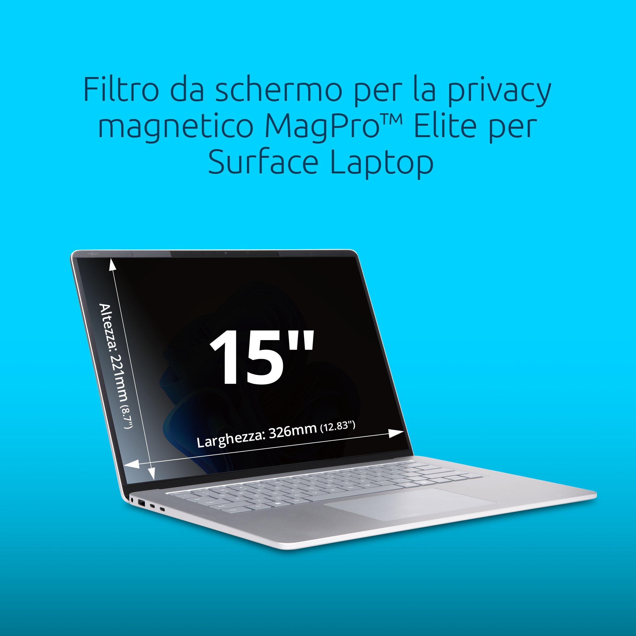 Filtro per la privacy magnetico MagPro Elite Kensington per Microsoft Surface Laptop 15" (7a edizione) blocco della luce blu, antiriflesso, antigraffio, compatibile/abilitato per touch e penna Surface