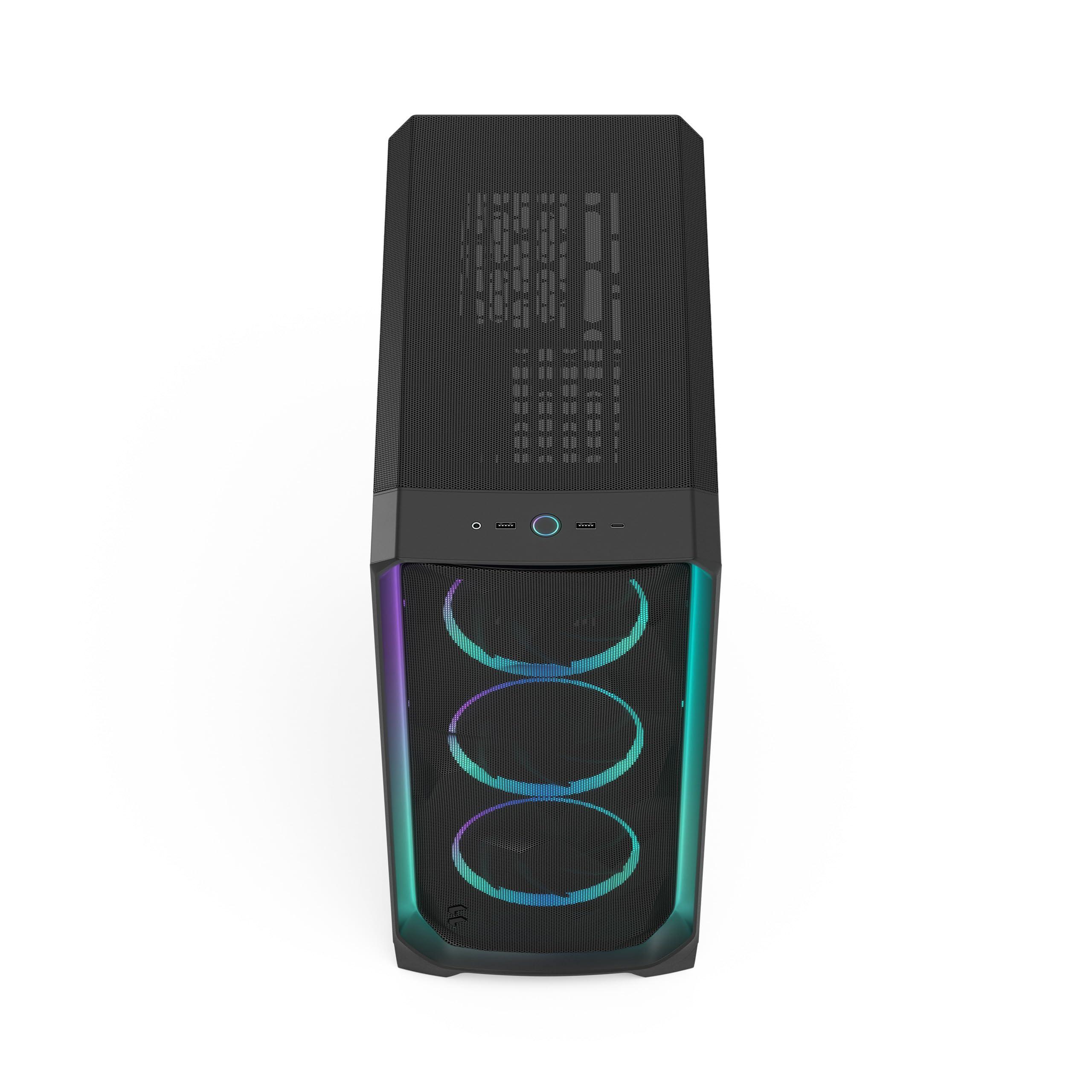 Fractal Design Meshify 3 Ambience Pro RGB Black Tempered Glass Light Tint - High Airflow PC Gaming Case - Mesh Front Panel - Adjust Pro Hub and Three ARGB Momentum 14 Fans Included