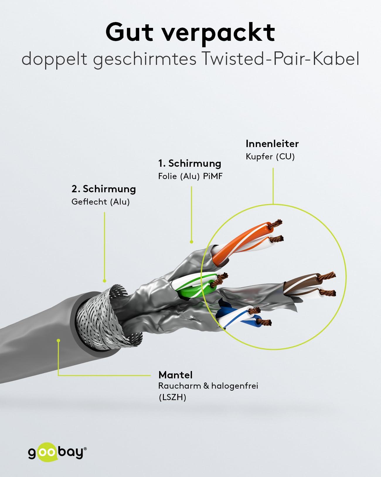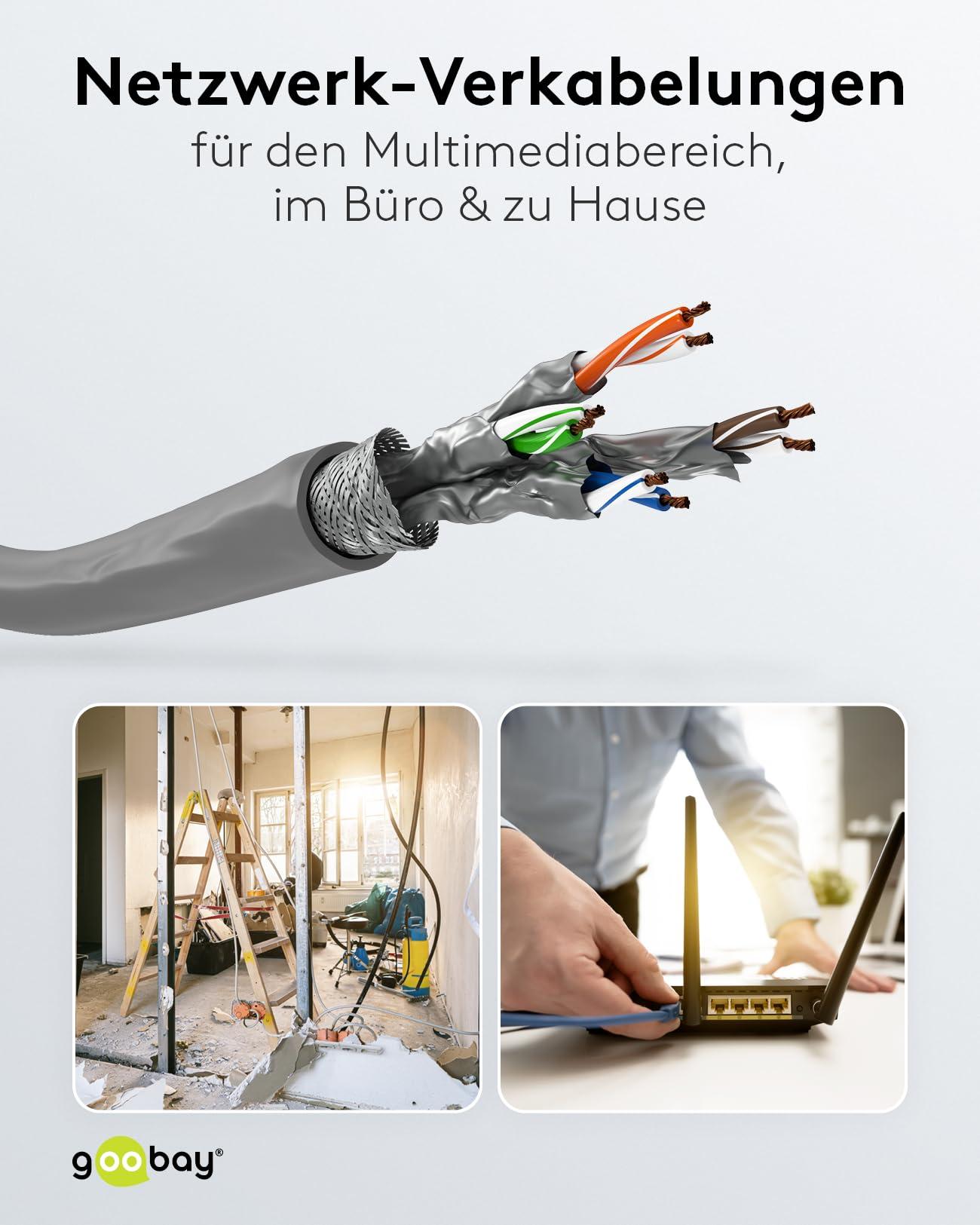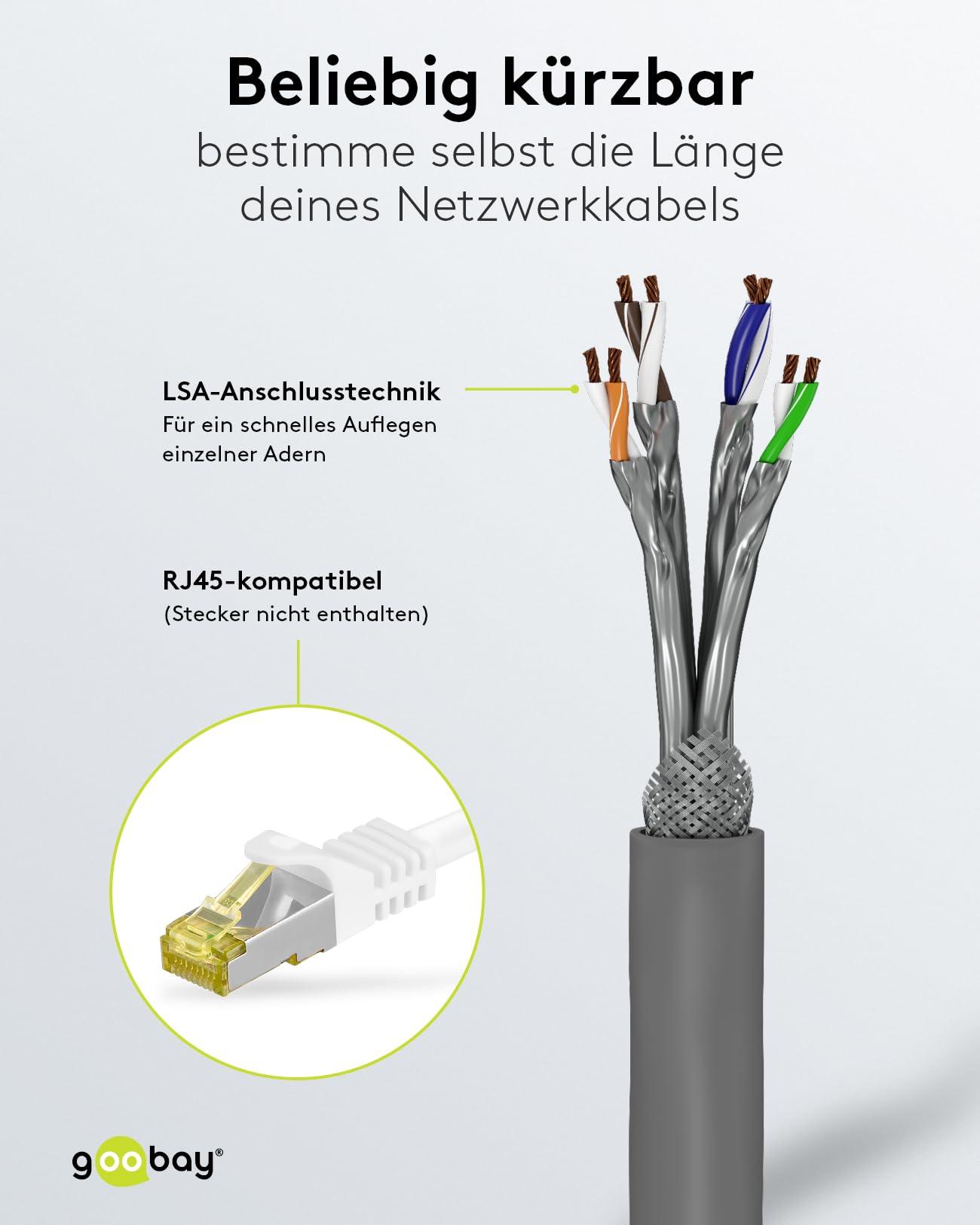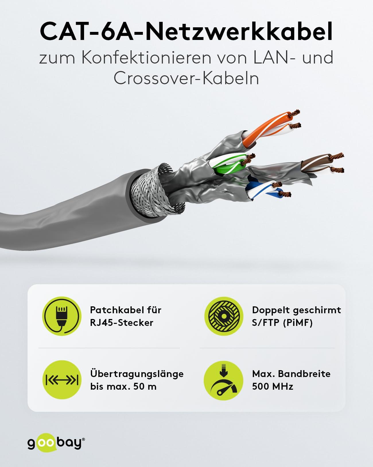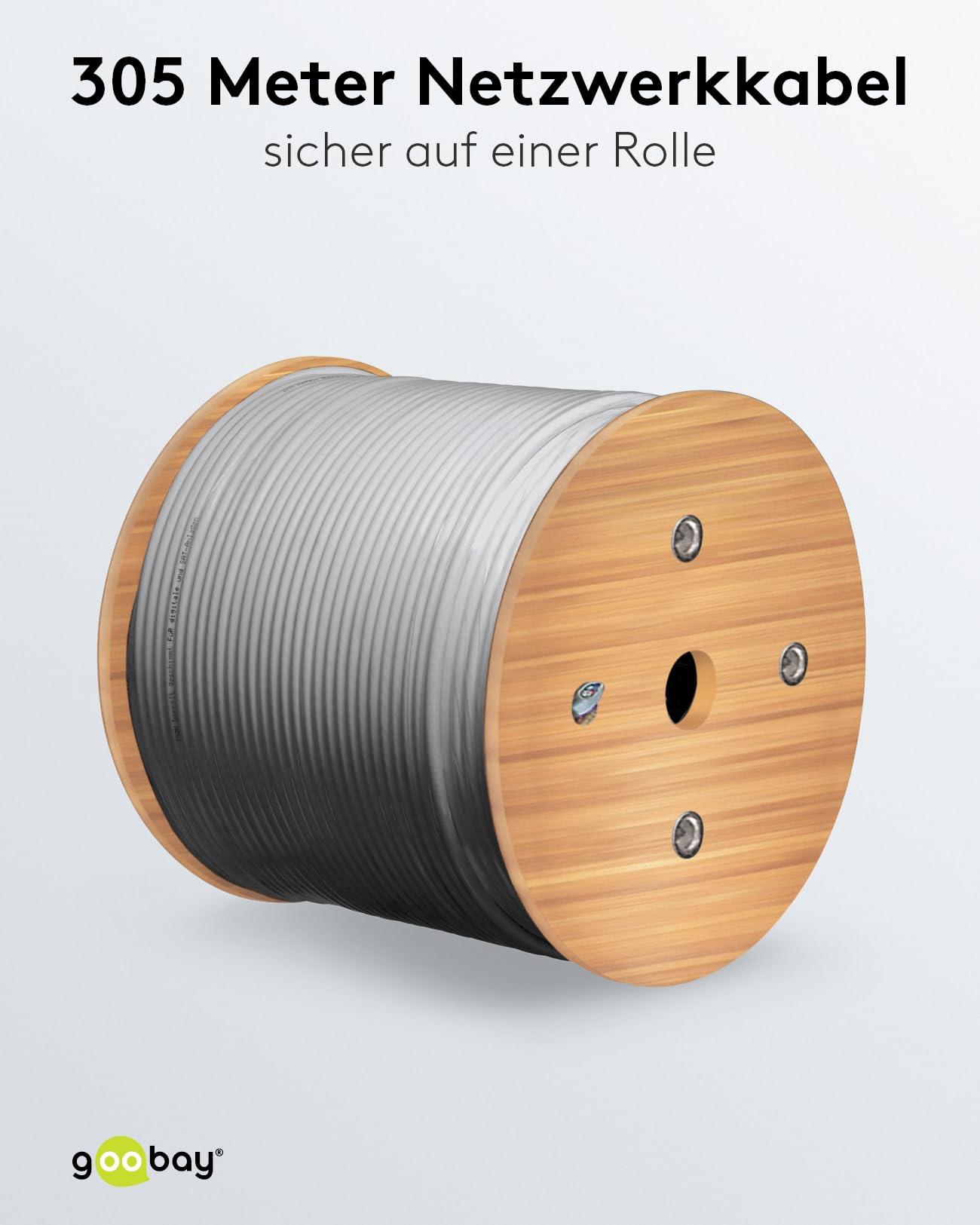 Goobay 96095 CAT 6a Cavo di Rete Matassa, S/FTP (PiMF), Grigio, 305 m Lunghezza del Cavo