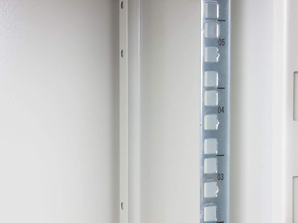 - Guide profilate a profondità variabile. Dimensioni (larghezza x profondità): 300 x 312 mm, 9 U