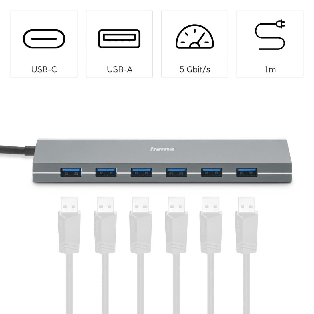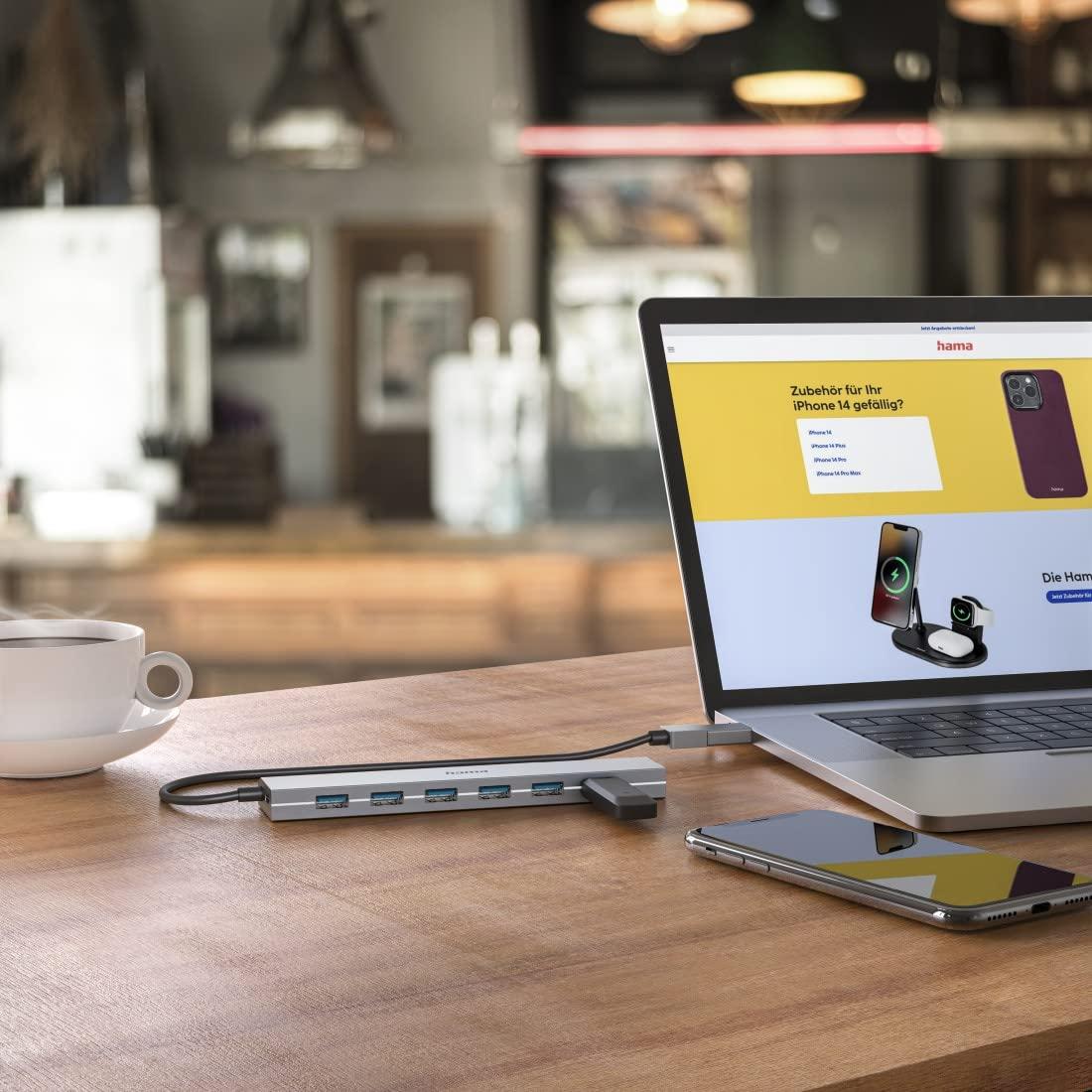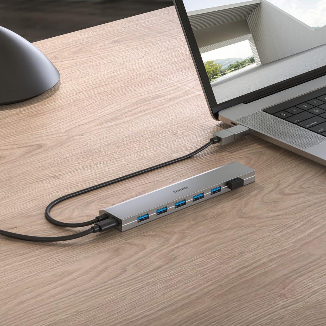Hama Hub USB 7 porte (porta USB-A e USB-C con alimentatore, 7 x USB-A per mouse, tastiera, disco rigido esterno, chiavetta USB, ecc., alloggiamento in alluminio, adattatore USB per ufficio, casa
