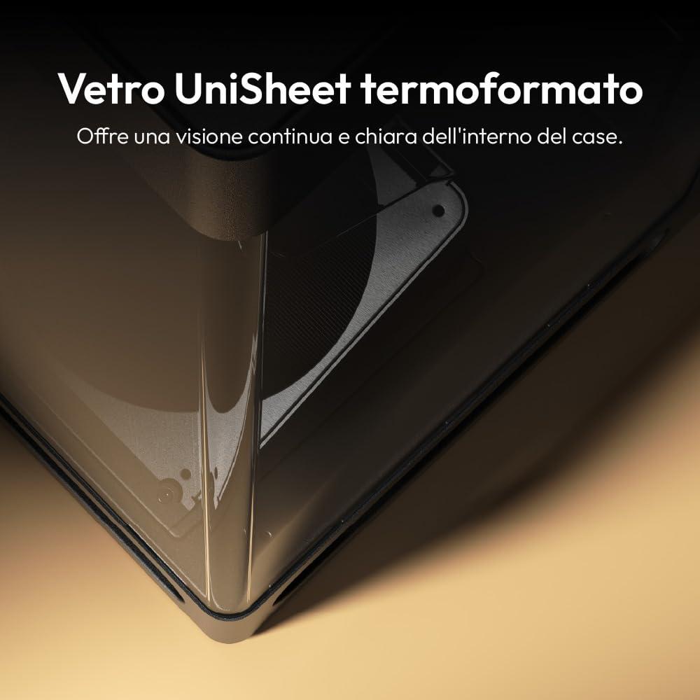 - Pannello in vetro UniSheet termoformato: il vetro temperato ha una curvatura ottimale per una distorsione minima, fornendo una visione chiara e ininterrotta degli interni del PC attraverso il suo design innovativo.