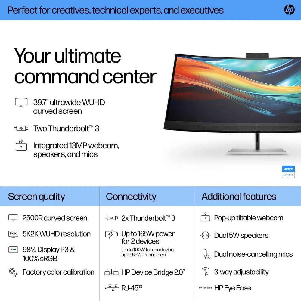 HP 740pm - Series 7 Pro - Monitor LED - Curvo - 101,6 cm (40") - 5120 x 2160 WUHD @ 60 Hz - IPS - 300 cd/m² - 1000:1-5 ms - 2 Thunderbolt 3, HDMI, DisplayPort - Altoparlanti - Nero, Argento