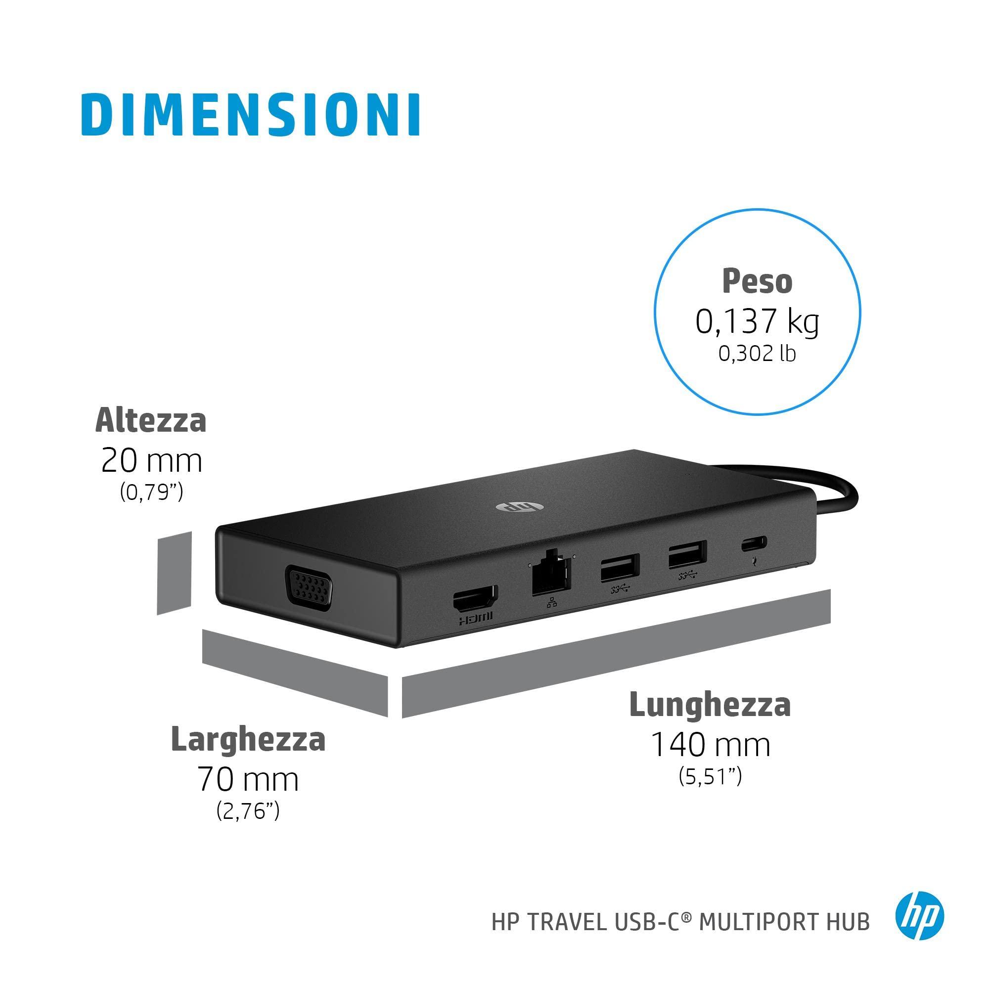 - CONTENUTO DELLA CONFEZIONE: HP Travel USB-C Multi Port Hub; scheda di garanzia; guida rapida; informativa prodotto