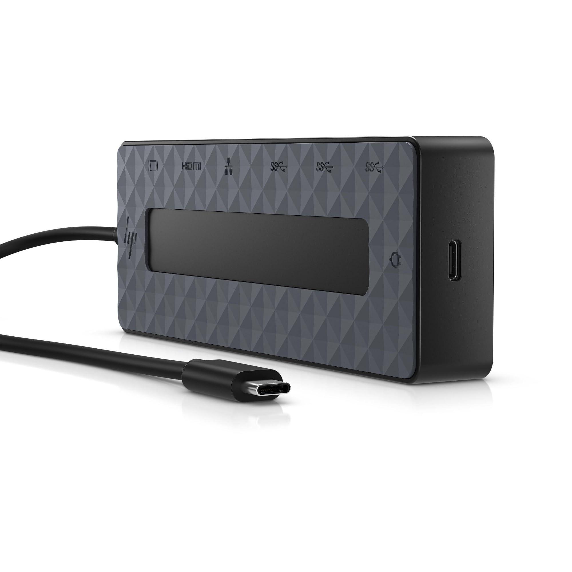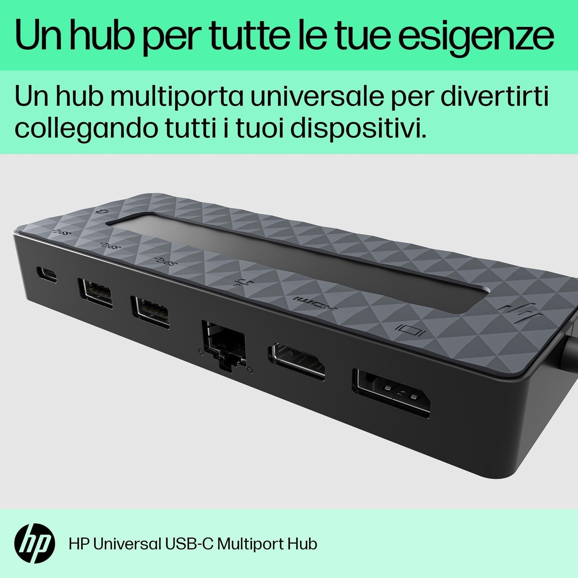 HP Hub Multi porta USB-C Universale, Compatibile con PC dotati di Porta USB-C, Power Delivery e DisplayPort, Nero