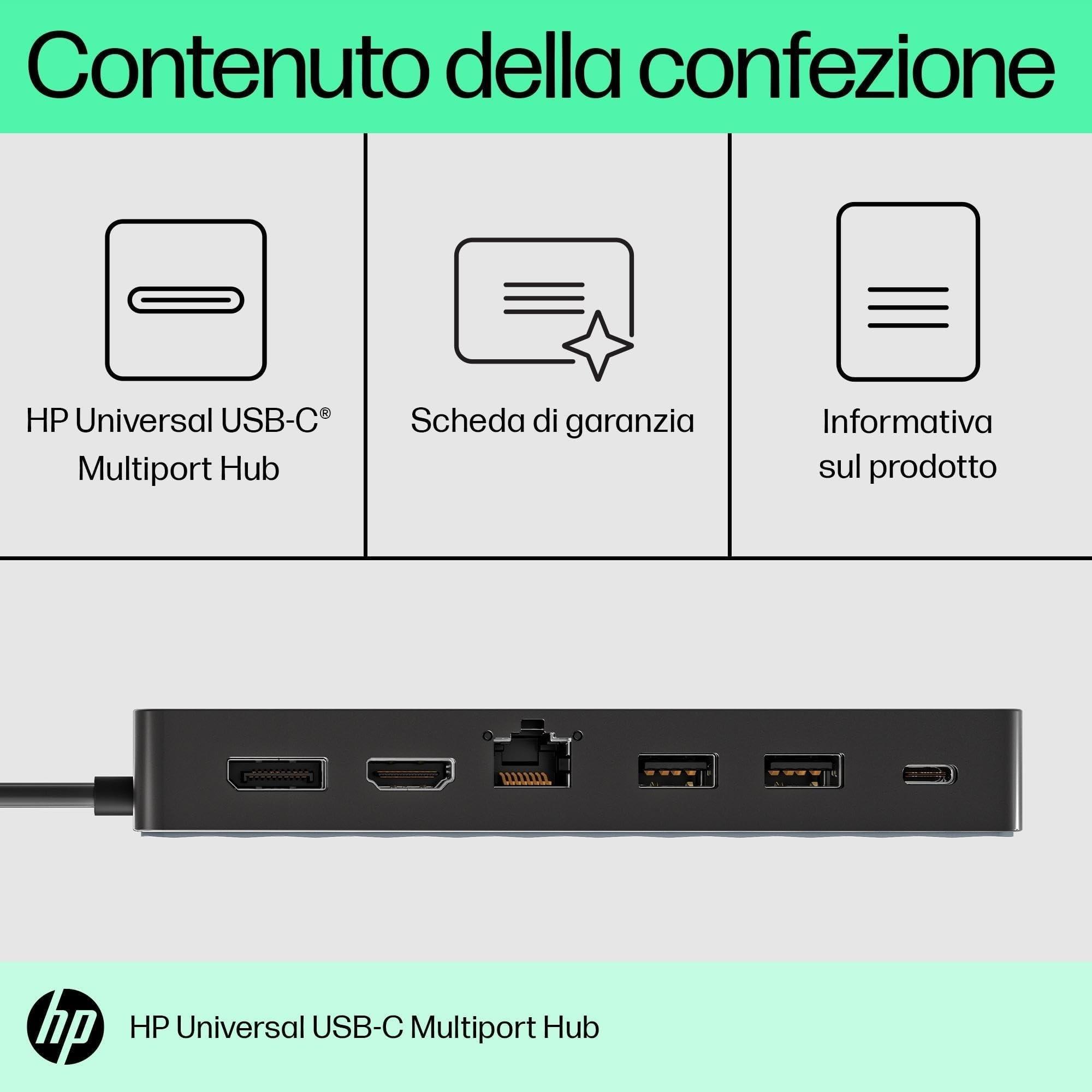 - CONTENUTO DELLA CONFEZIONE: Hub multiporta USB-C universale HP; informativa prodotto; garanzia