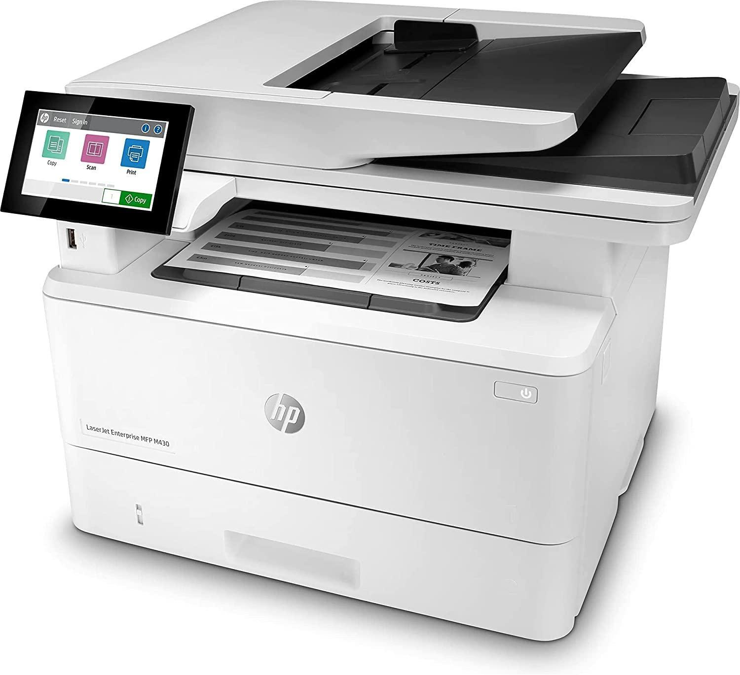 HP LaserJet Enterprise M430f 3PZ55A, Stampante Multifunzione A4, Stampa Fronte e Retro Automatico in b/n, 40 ppm, Copia, Scansiona, Fax, Ethernet, USB 2.0, ADF, HP Smart, Schermo Touch LCD, Bianca