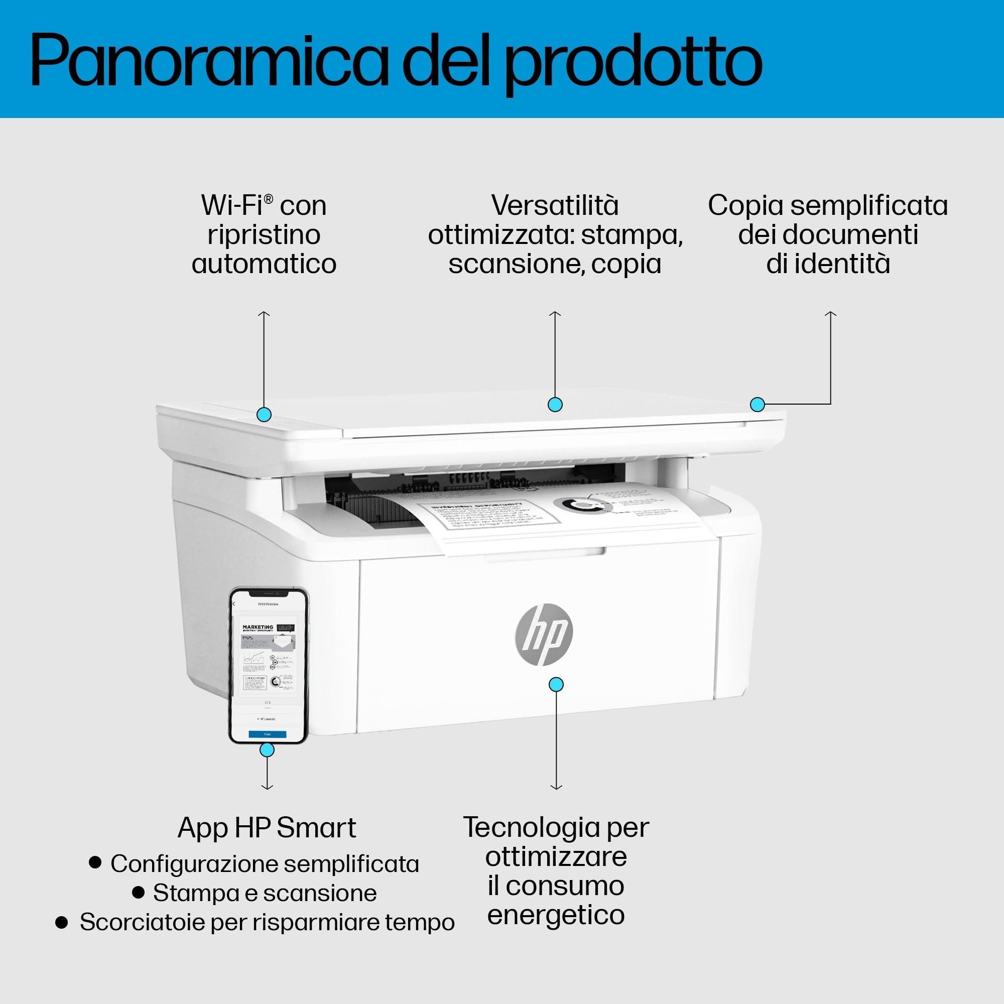 HP LaserJet M140w 7MD72F, Stampante Multifunzione Laser A4, Monocromatica, Stampa Fronte e Retro Manuale in Bianco e Nero, 20 ppm, Wi-Fi, Smart, Bianca