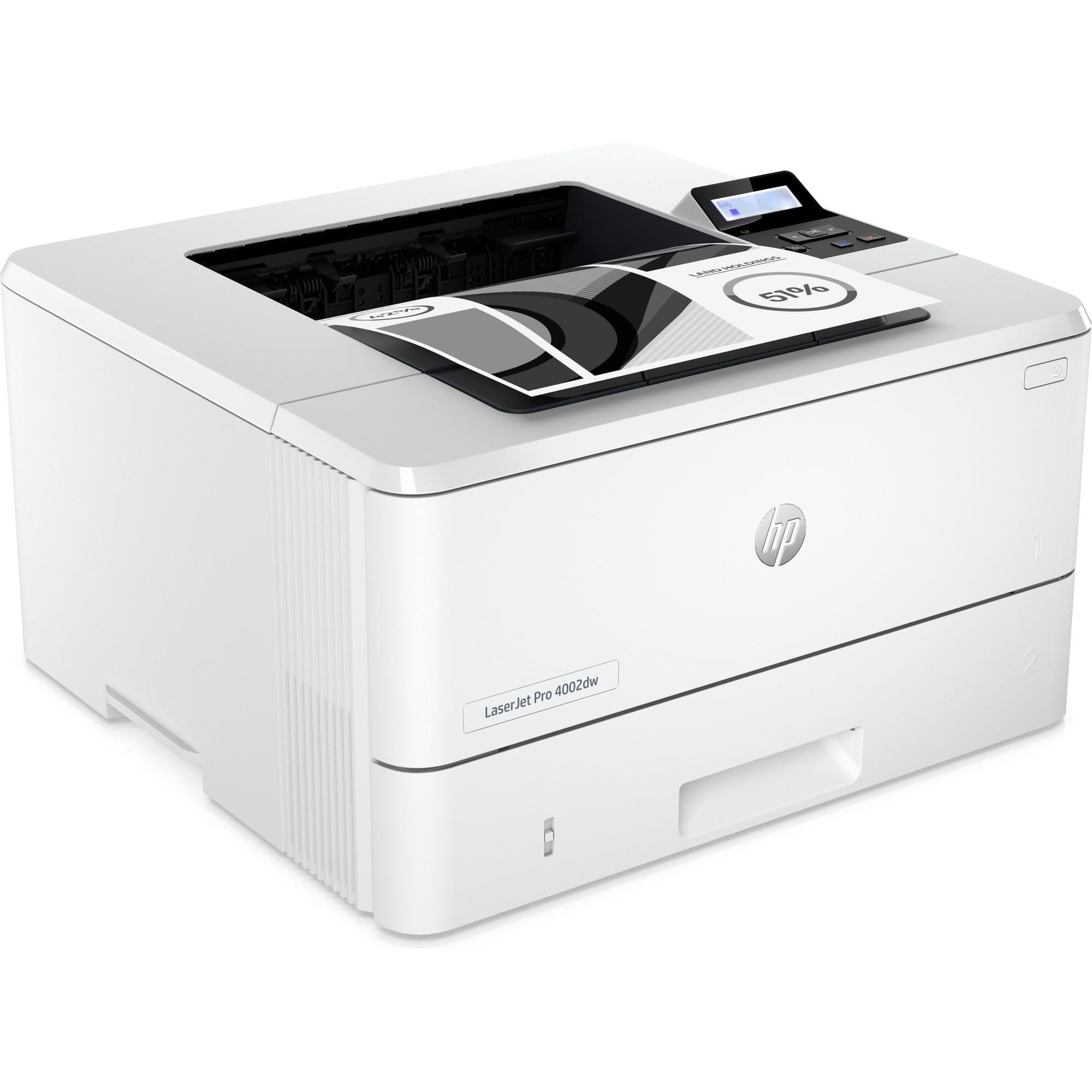 HP Laserjet Pro 4002dw 2Z606F, Stampante a Singola Funzione A4, Stampa Fronte e Retro Automatico in b/n, 42 ppm, USB, USB Host, WiFi, Gigabit Ethernet, HP Smart, Bianca