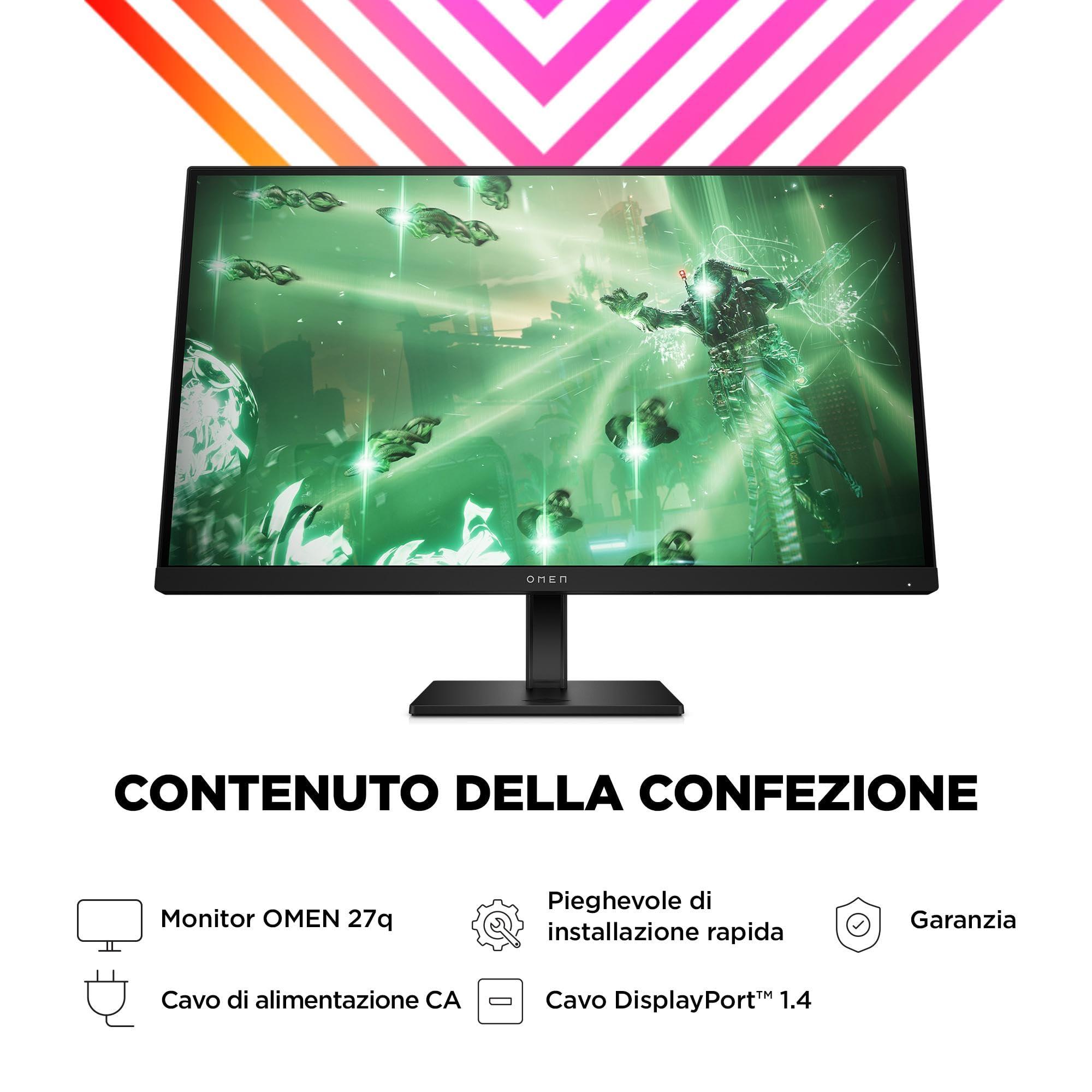 HP OMEN 27q QHD Monitor, Schermo da 27 Pollici Quad HD, Risoluzione 2560 x 1440 Pixel, Pannello IPS da 165Hz, 1 ms, DisplayHDR 400, Antiriflesso, 450 nits, AMD FreeSync, USB, HDMI, Nero