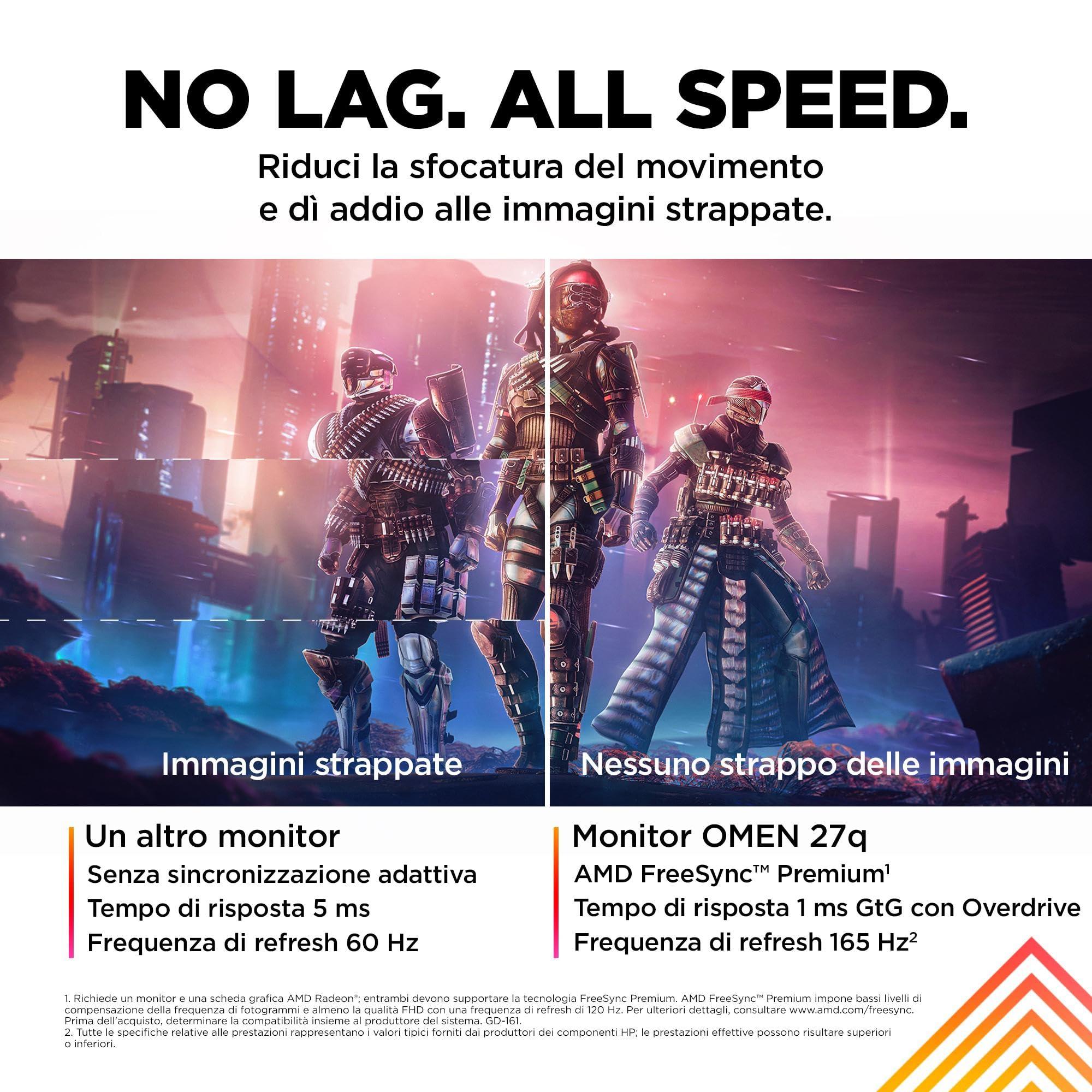 - NESSUN RITARDO, SOLO PURA VELOCITÀ: Un'immagine dopo l'altra di pura azione senza distrazioni; con una velocità di aggiornamento di 165 Hz e un tempo di risposta GTG con overdrive di appena 1 ms, questo display offre immagini realistiche senza sfocature di movimento; grazie alla tecnologia AMD FreeSync Premium, lo screen tearing e i ritardi appartengono al passato