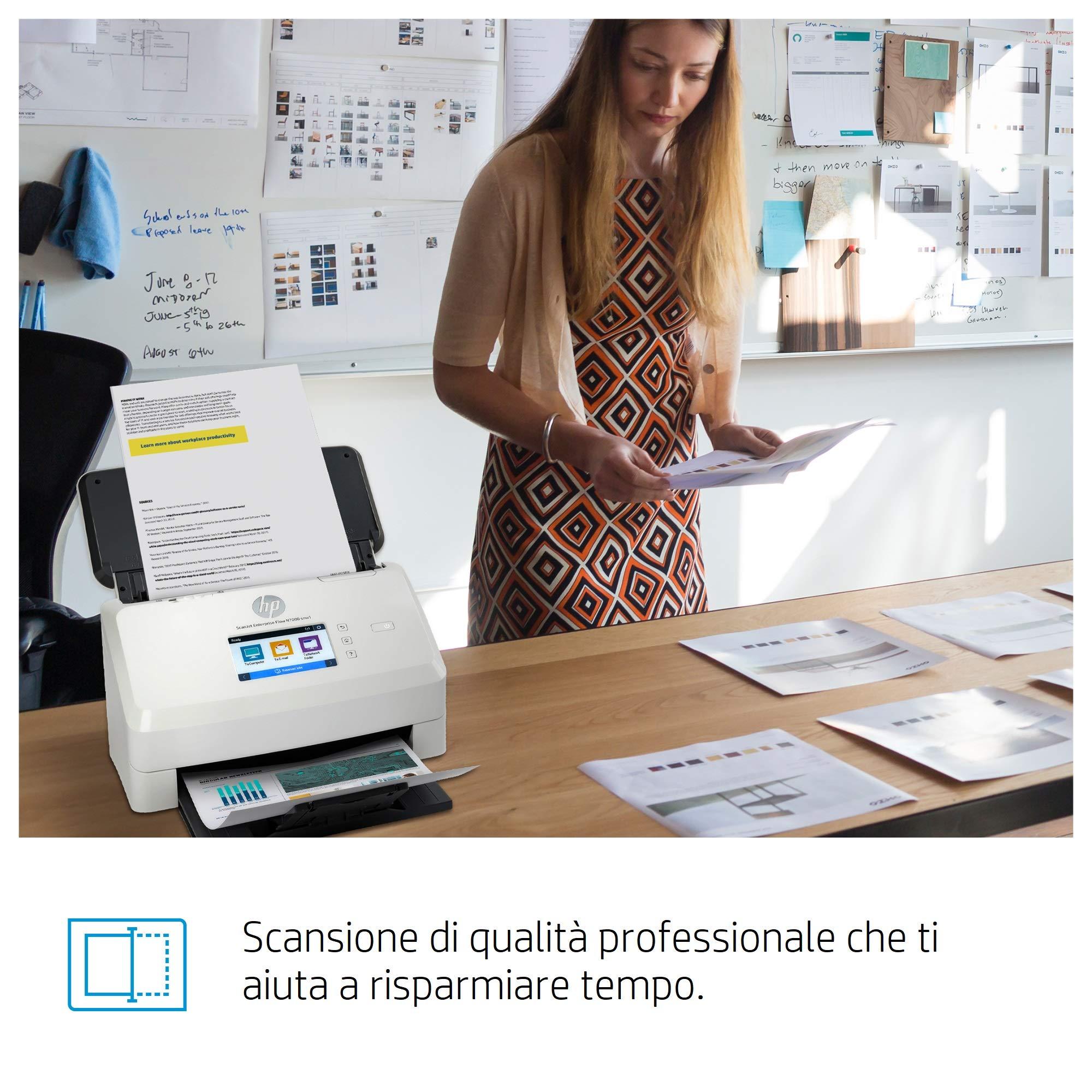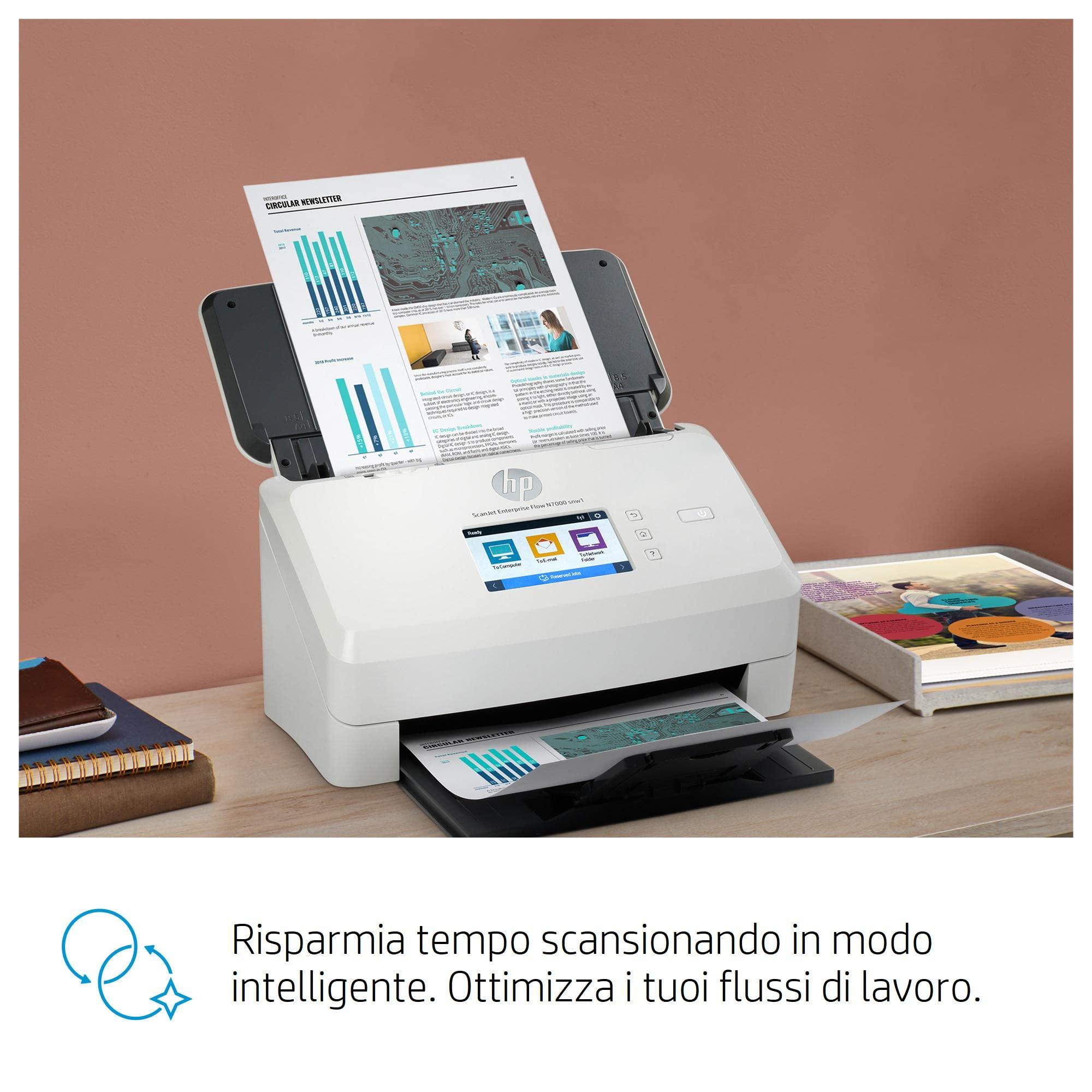 HP ScanJet Enterprise Flow N7000 snw1 6FW10A, Doppia scansione a singolo passaggio, Formato A3, 75 ppm e 150 ipm, Display Touchscreen 10,9 cm, Piccolo e sottile, Bianco