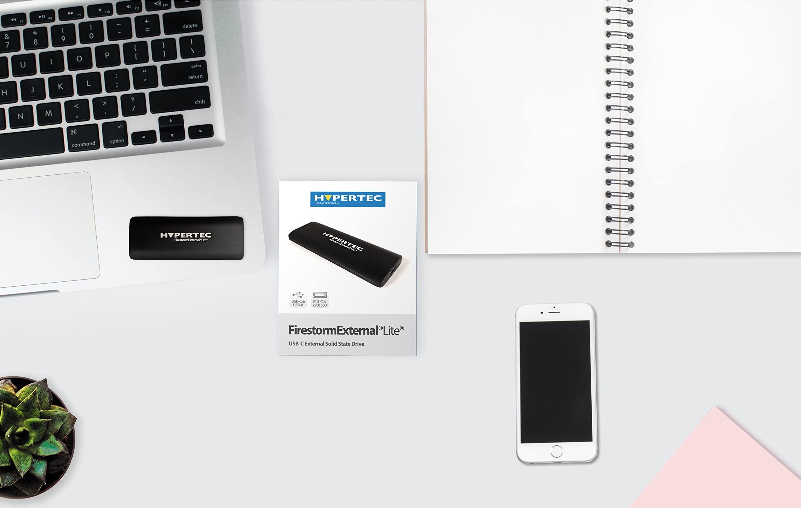 Hypertec FirestormExternal Lite - SSD portatile da 512 GB, USB3.1, PCIe Gen2, con 950 MB/s in lettura/950 MB/s in scrittura, custodia sottile in alluminio