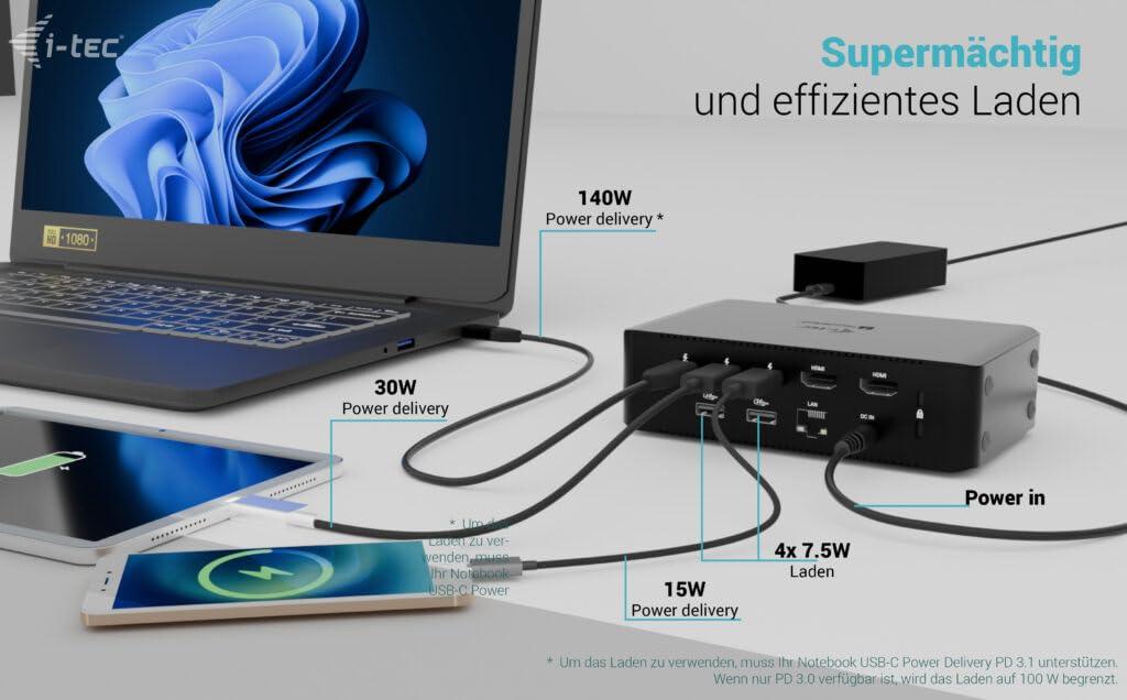 - Fornisce alimentazione fino a 140 W per laptop e tablet compatibili con interfacce USB4, USB-C o Thunderbolt