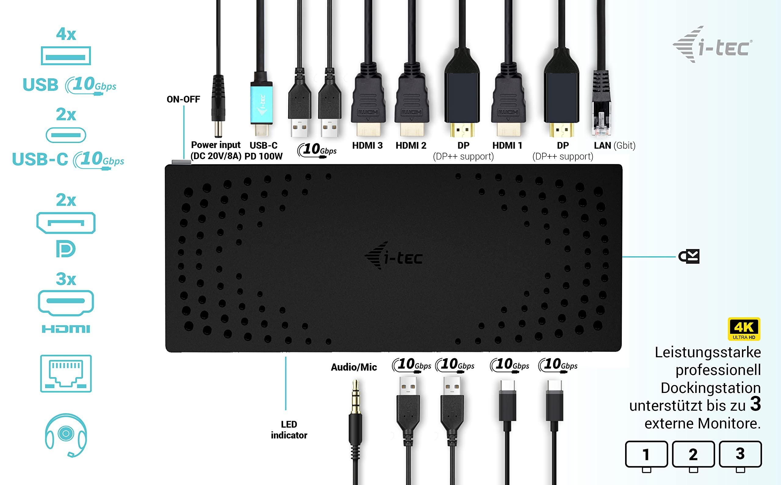 i-tec USB 3.0 / USB-C/Thunderbolt, 3 x 4 K Docking Station Gen 2 + Power Delivery 100 W