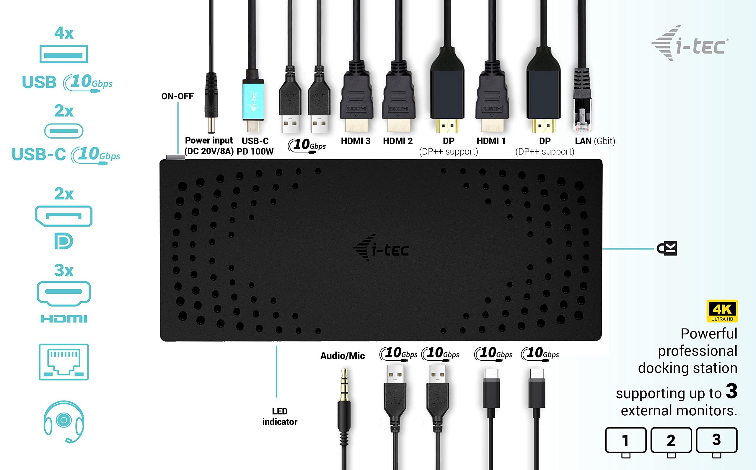 i-tec USB 3.0 / USB-C/Thunderbolt, 3x 4K Docking Station Gen 2 + Power Delivery 100W