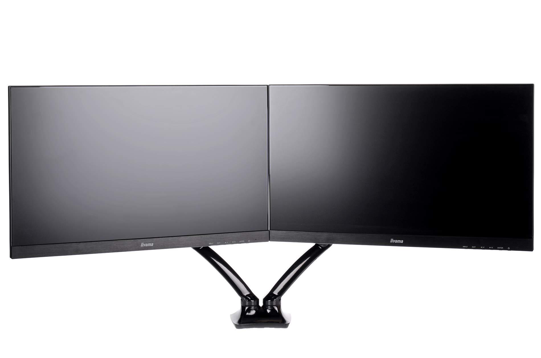 iiyama DS3002C-B1 Staffa per Monitor Doppio, Braccio con Molla a Gas, per Monitor Fino a 27 Pollici, Fino a 5kg x Monitor, Nero
