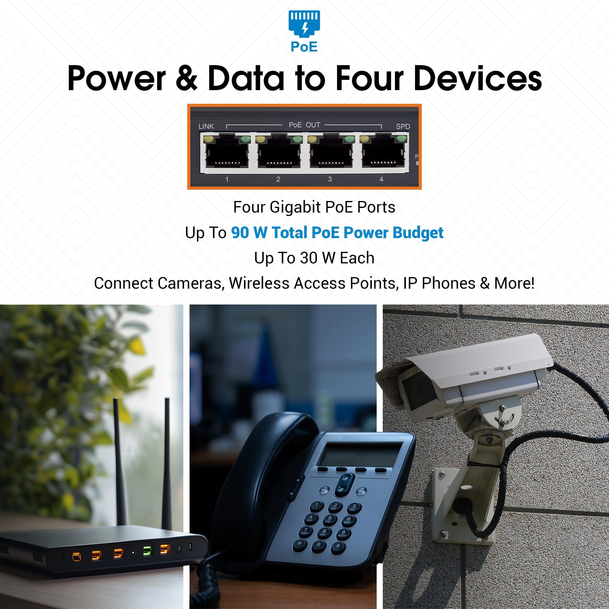 - INTELLINET 4-PORT GIGABIT ULTRA POE-EXTENDER 90W UM 100M