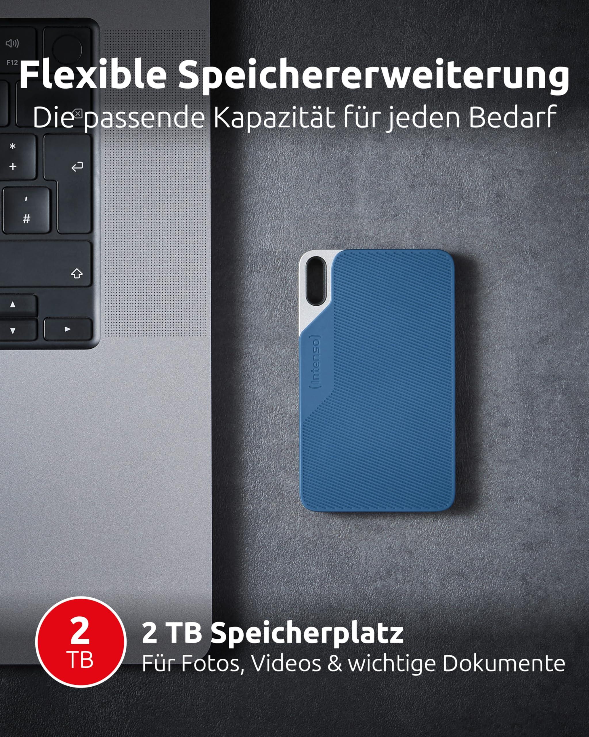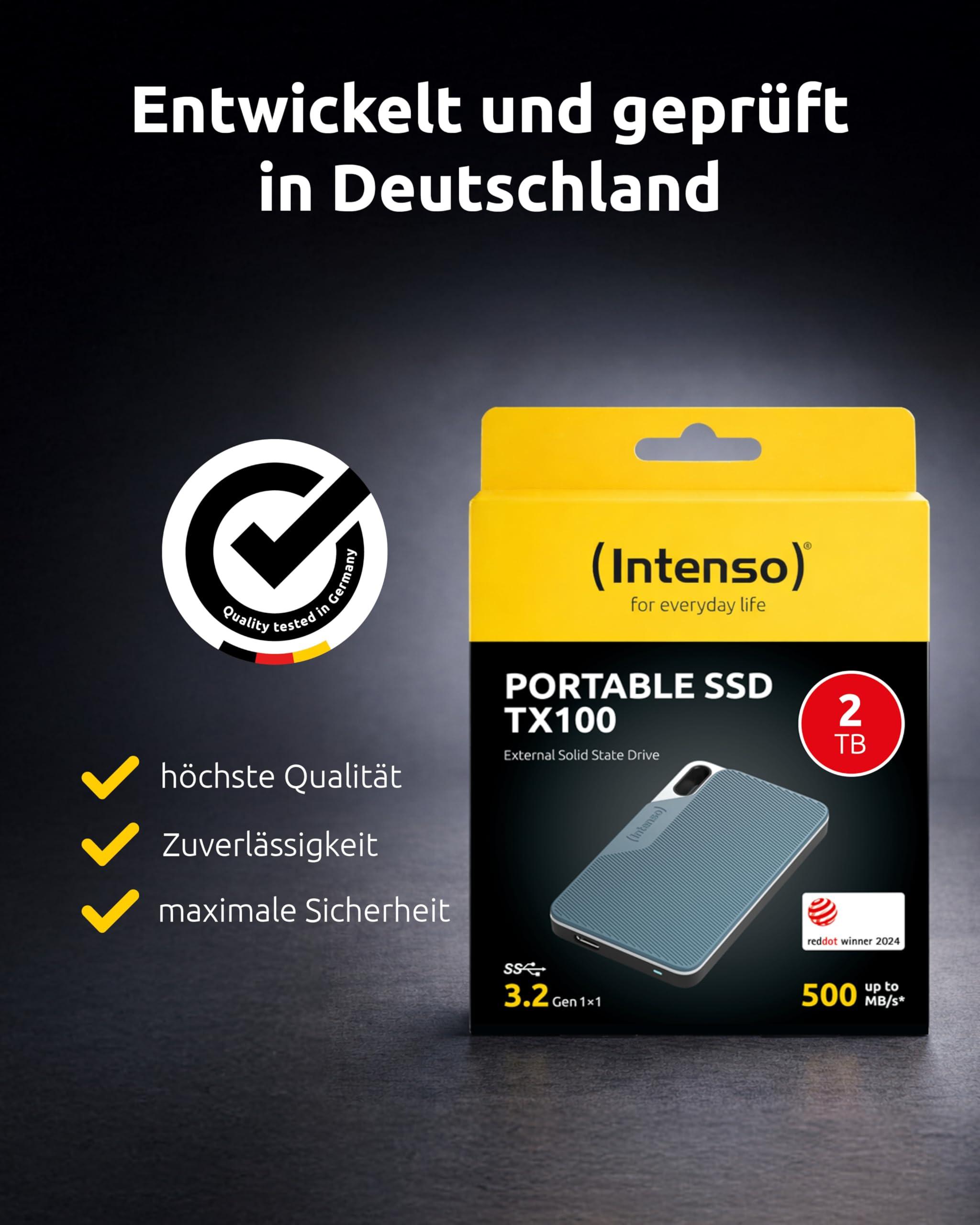 Intenso SSD esterno TX100, 2 TB Portable Solid State Drive, Super Speed USB 3.2 Gen 1x1 (5 Gbps), fino a 500 MB/s