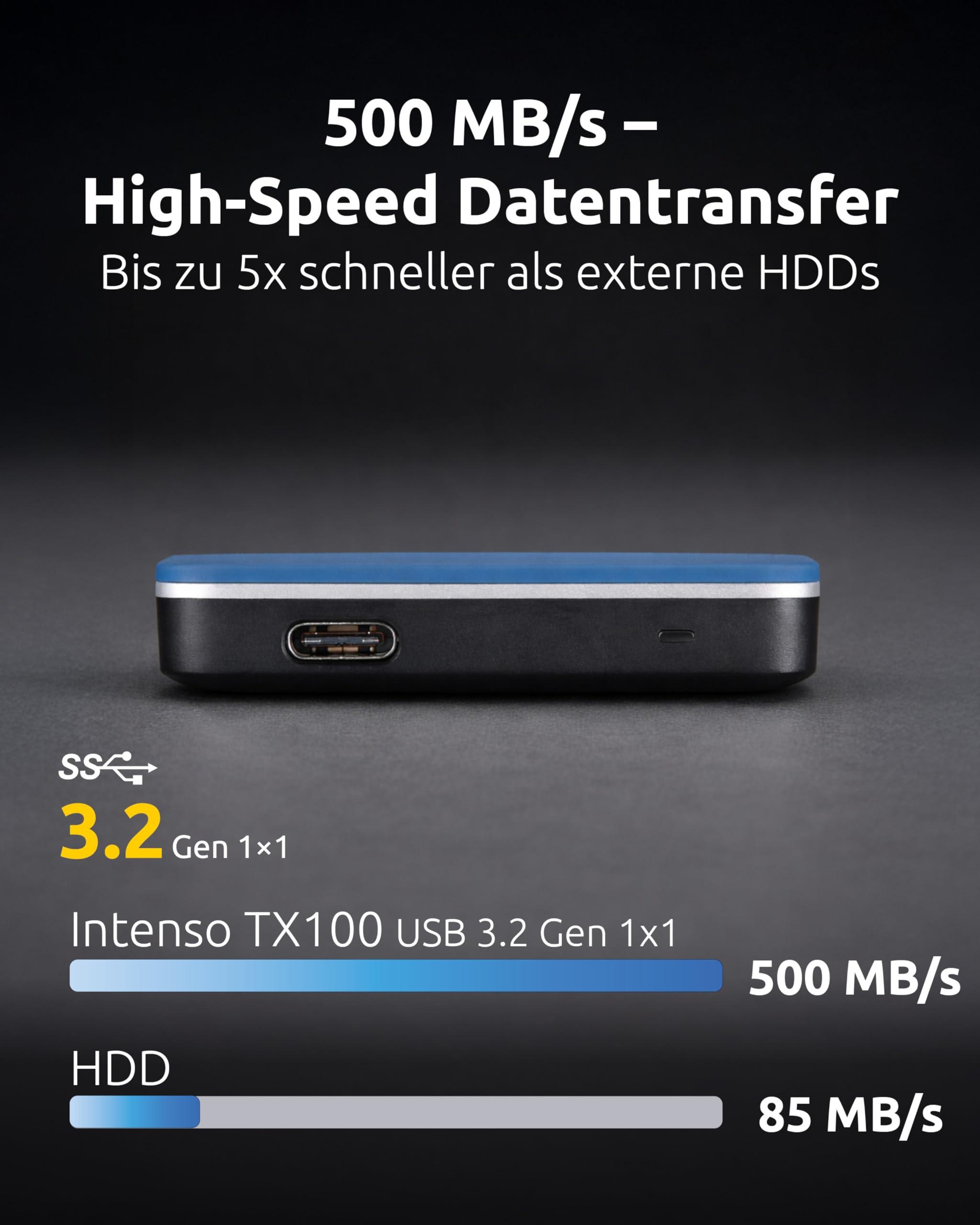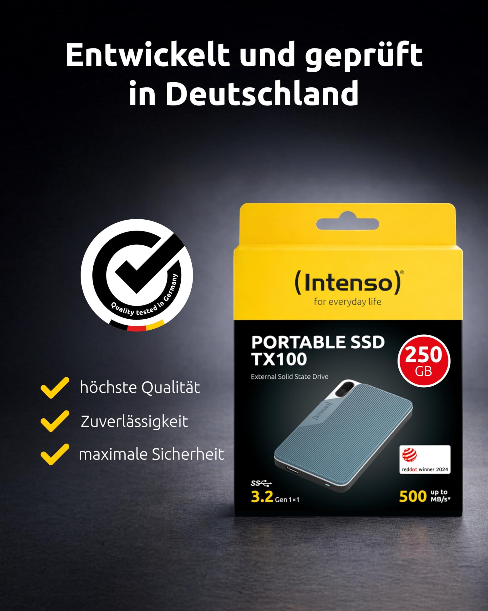 Intenso SSD esterno TX100, 250 GB Portable Solid State Drive, Super Speed USB 3.2 Gen 1x1 (5 Gbps), fino a 500 MB/s