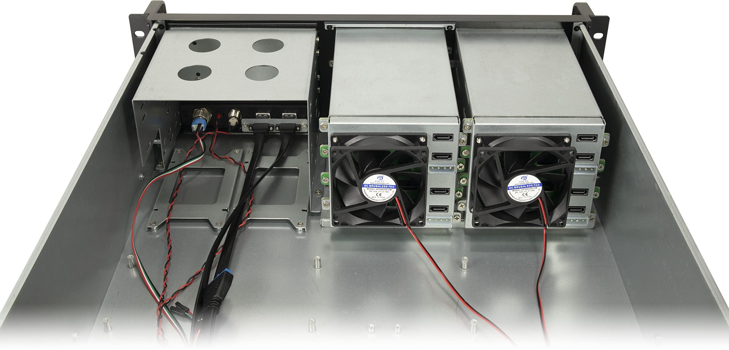 - 2 x 4 slot hot-swap backplane con prese SATA (max. 6 g)