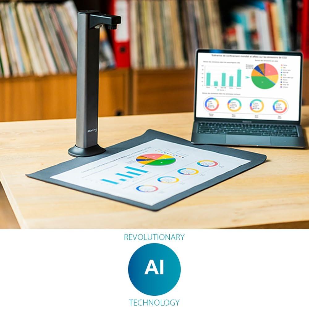 Una delle caratteristiche più notevoli di IRIScan Desk v6pro è la sua tecnologia di intelligenza artificiale. La funzione di appiattimento AI corregge automaticamente le distorsioni causate dalla curvatura del libro, garantendo scansioni nitide e nitide. La funzione AI Auto Scan rileva in modo intelligente il contenuto del documento e regola le impostazioni di scansione di conseguenza, ottimizzando la qualità della scansione. Inoltre, la funzione di mascheramento delle dita AI rileva e nasconde le dita posizionate sull'area di scansione, consentendo di ottenere scansioni nitide e professionali.