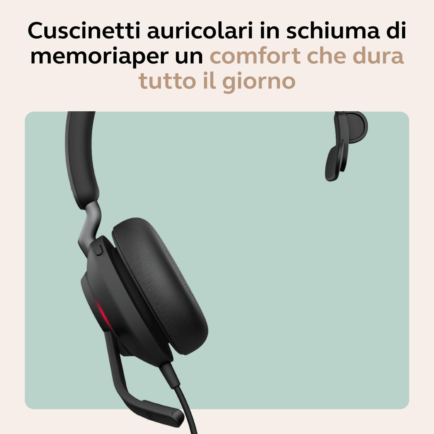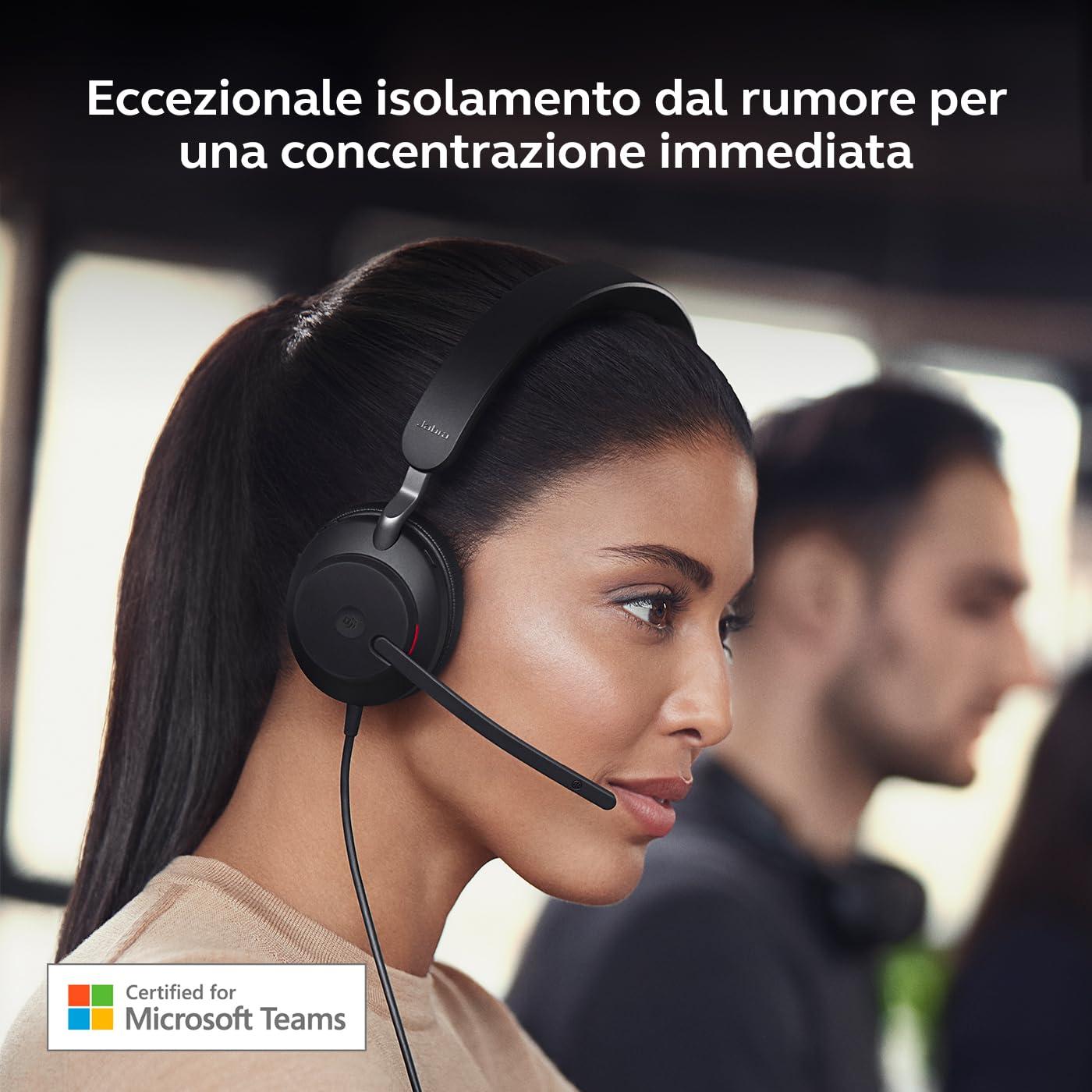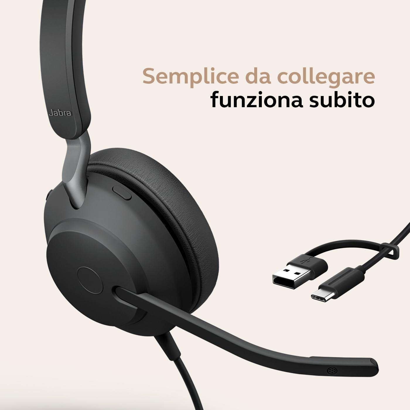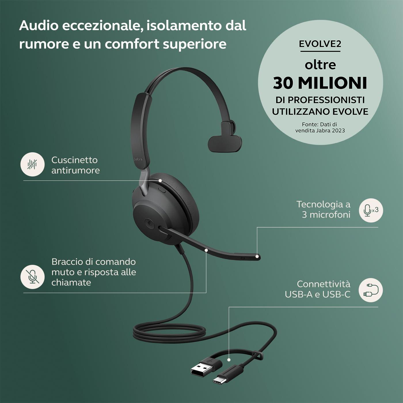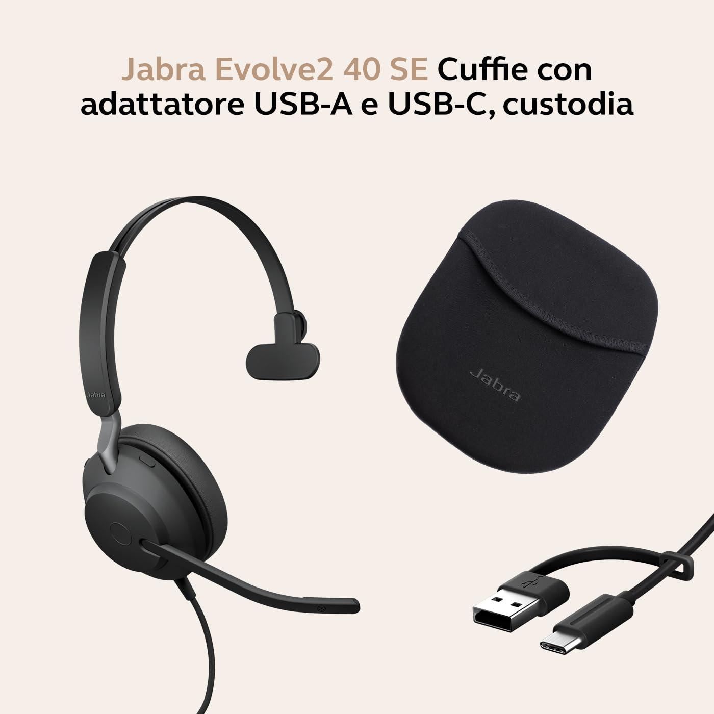 Jabra Evolve2 40 SE - Cuffie mono con cavo USB-C/A | Certificate per Microsoft Teams |