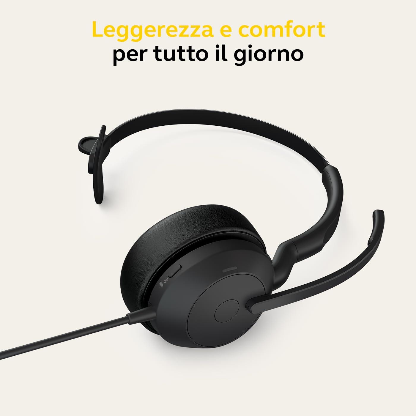 Jabra Evolve2 50 Cuffie Mono cablate con Jabra Air Comfort, USB-A, Tutte le piattaforme, Mono, Evolve2 50
