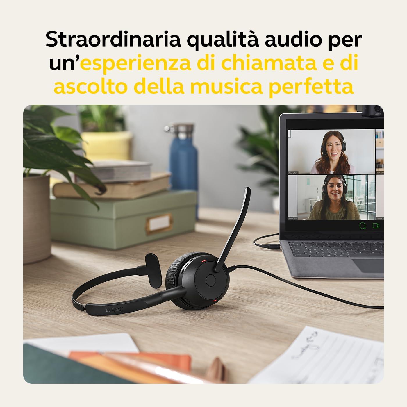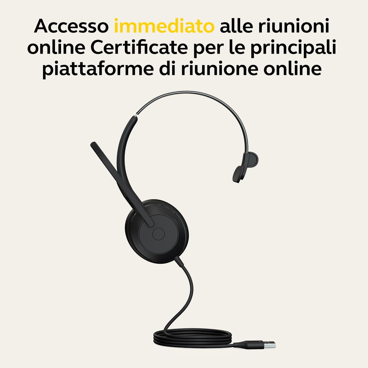 - Nella confezione: 1x Jabra Evolve2 50 Cuffie Mono cablate con Noise-Cancelling, Bluetooth, cavo USB-A, custodia per il trasporto e manuale per l'utente, peso delle cuffie: 98,7 g, colore: nero