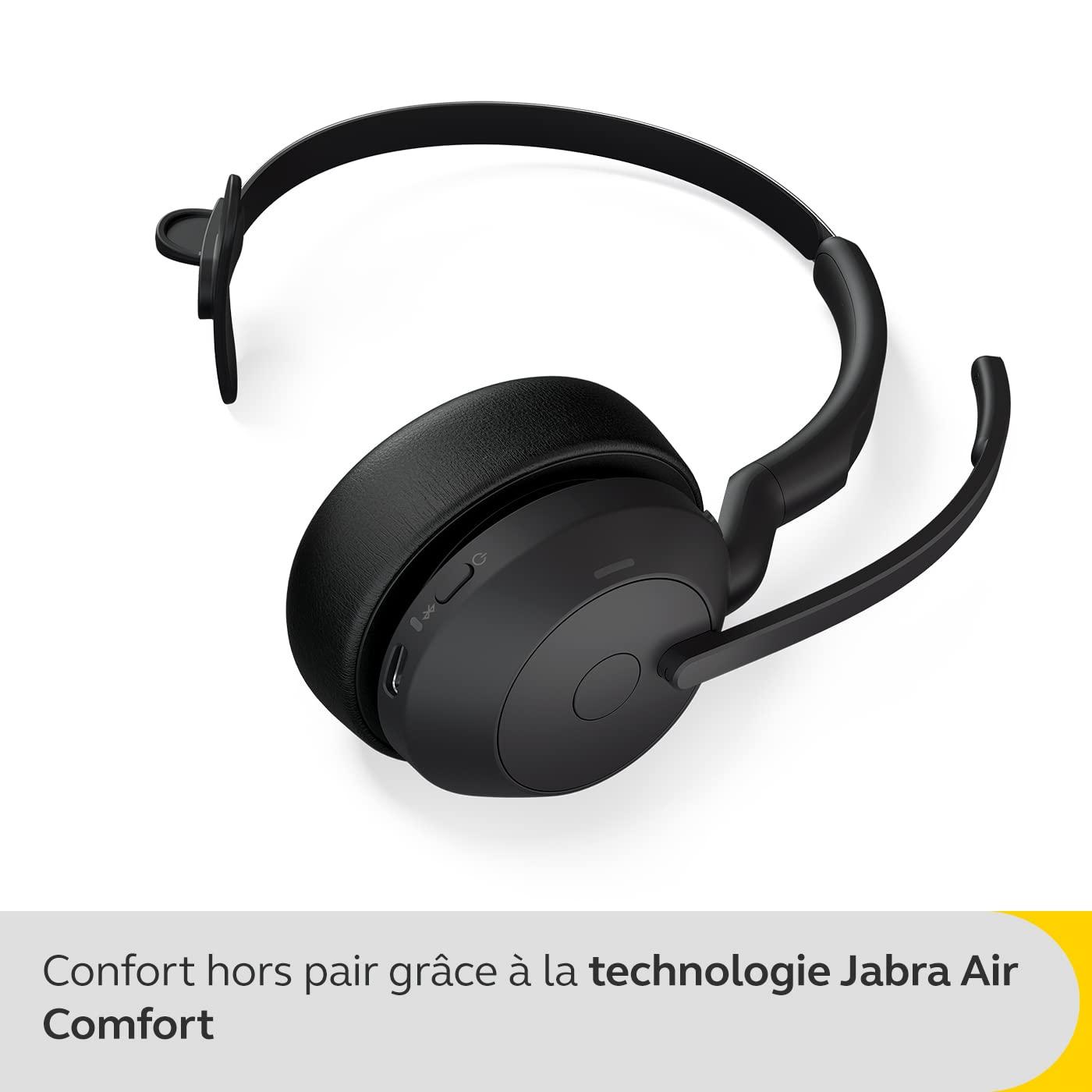 - Nella confezione: 1x Jabra Evolve2 55 Cuffie Wireless Mono Bluetooth con adattatore Bluetooth Link 380 USB-C, cavo USB-C, custodia per il trasporto, peso delle cuffie: 76 g, colore: nero