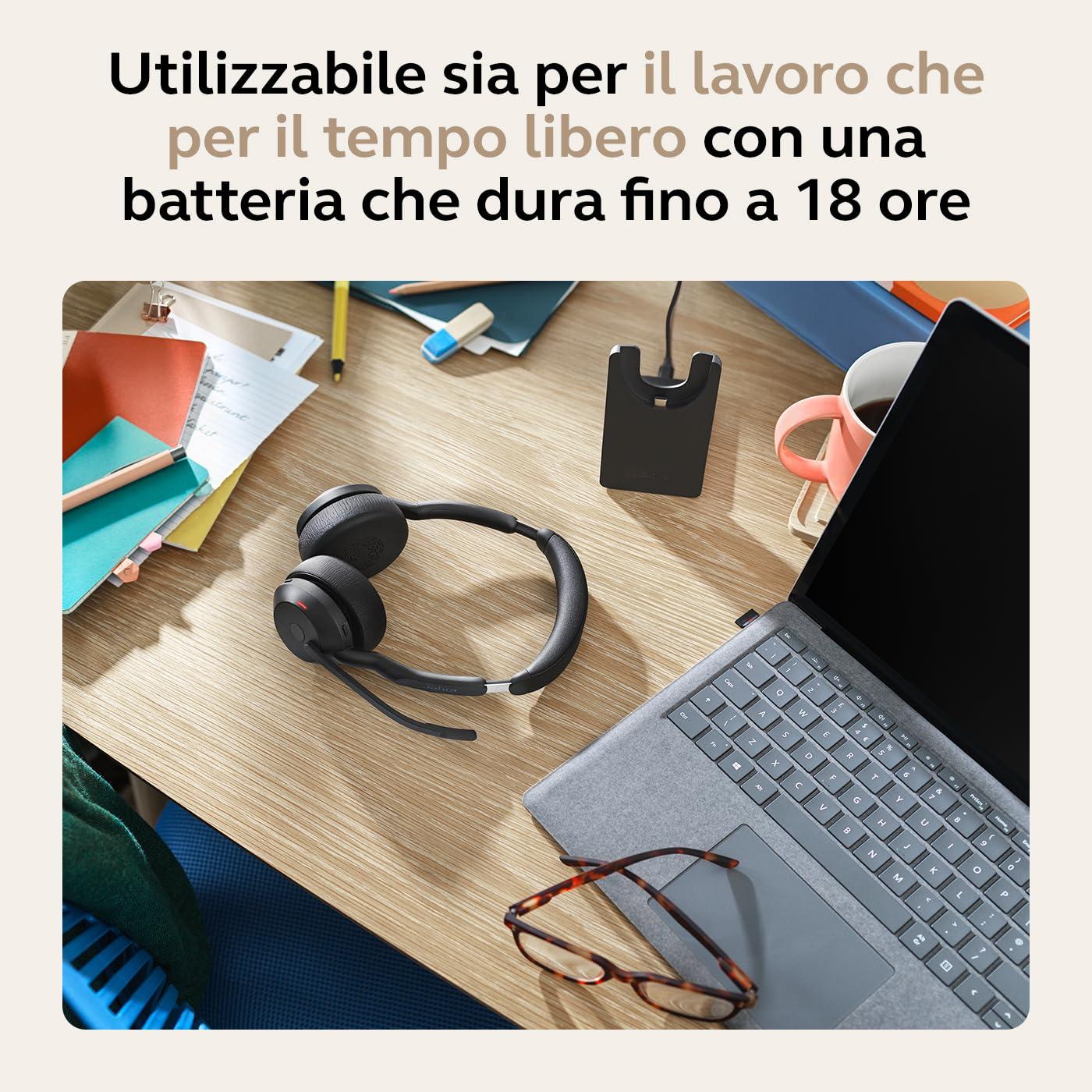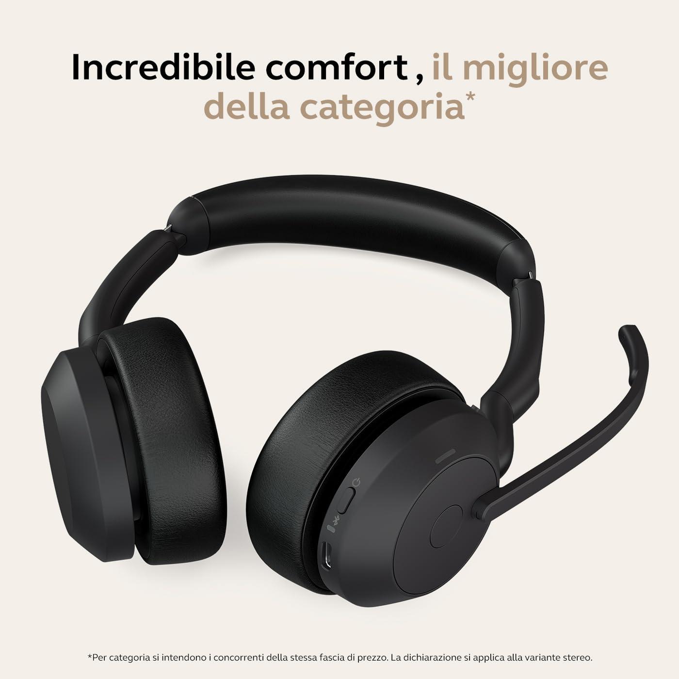 Jabra Evolve2 55 Cuffie Wireless Stereo con tecnologia Jabra Air Comfort, microfoni con cancellazione del rumore e ANC - Certificate MS Teams, funzionano con tutte le altre piattaforme - Nero
