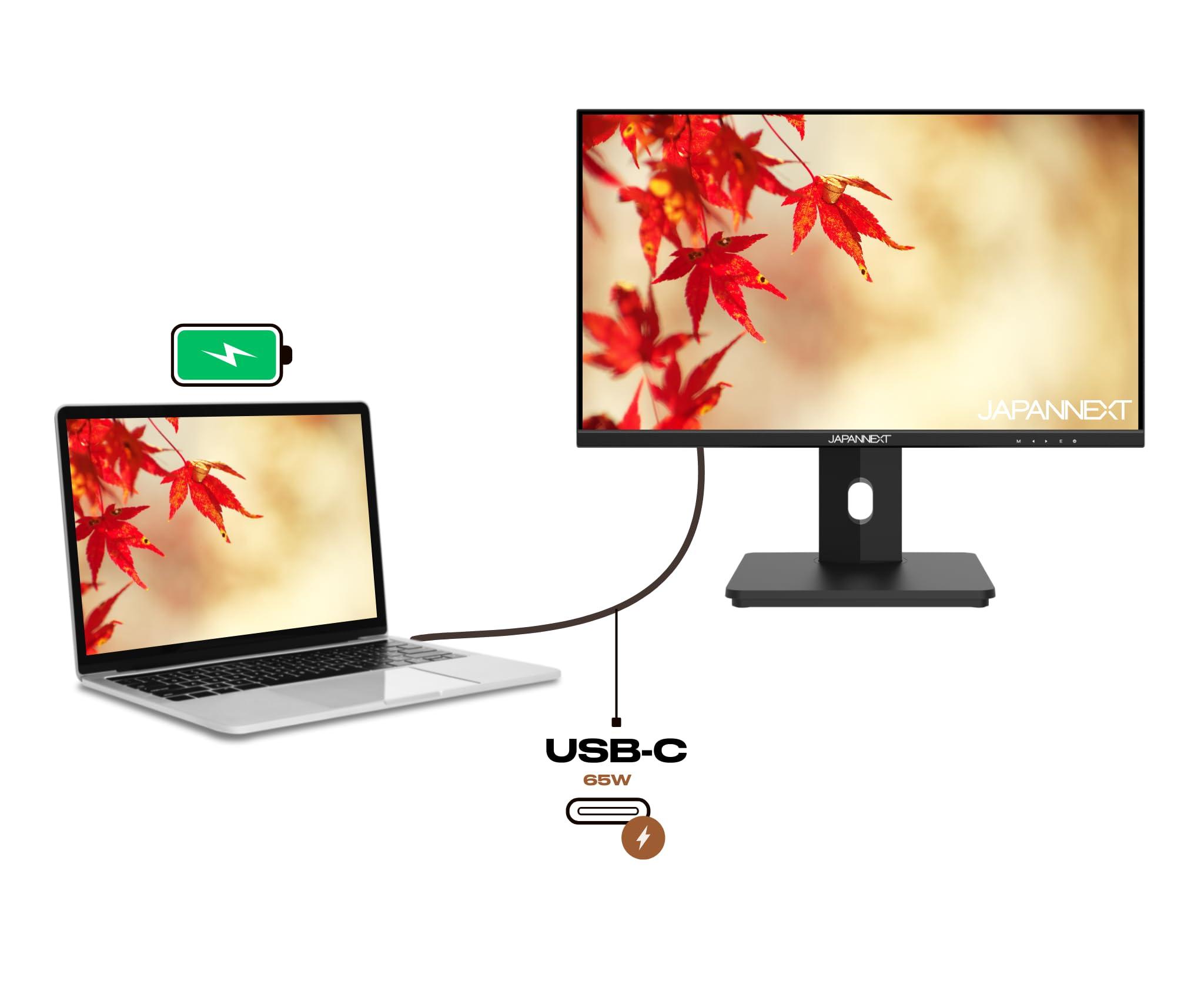 JapanNext Monitor 21.5" IPS Full HD (1920x1080) | HDR | Ricarica tramite USB-C (65W) Altezza e inclinazione regolabili (HSP) Altoparlanti | G-Sync/FreeSync | Garanzia 2 anni | JN-I215FLFHSP-C65W