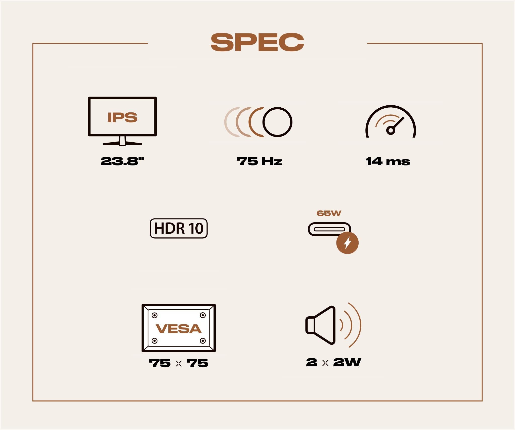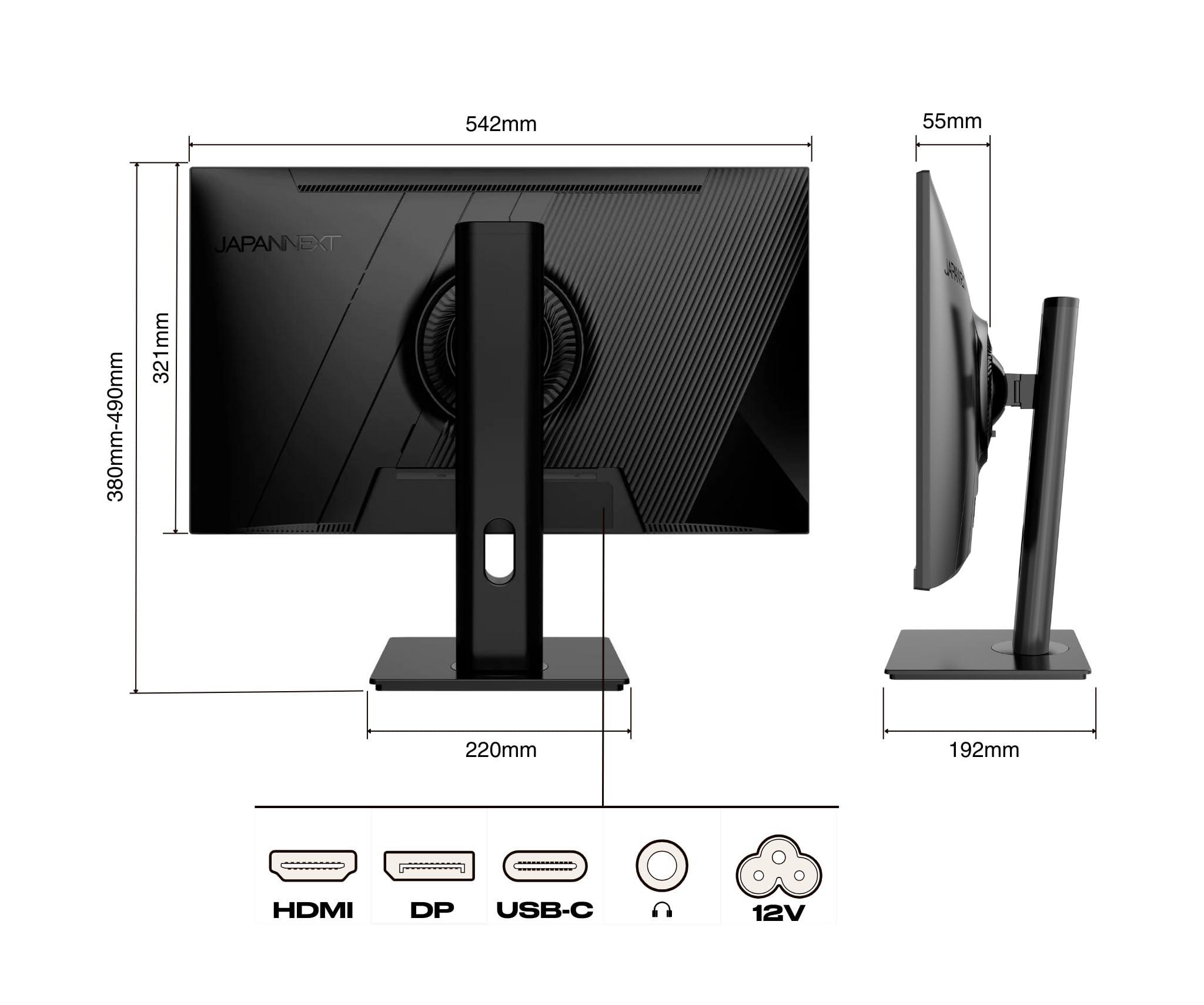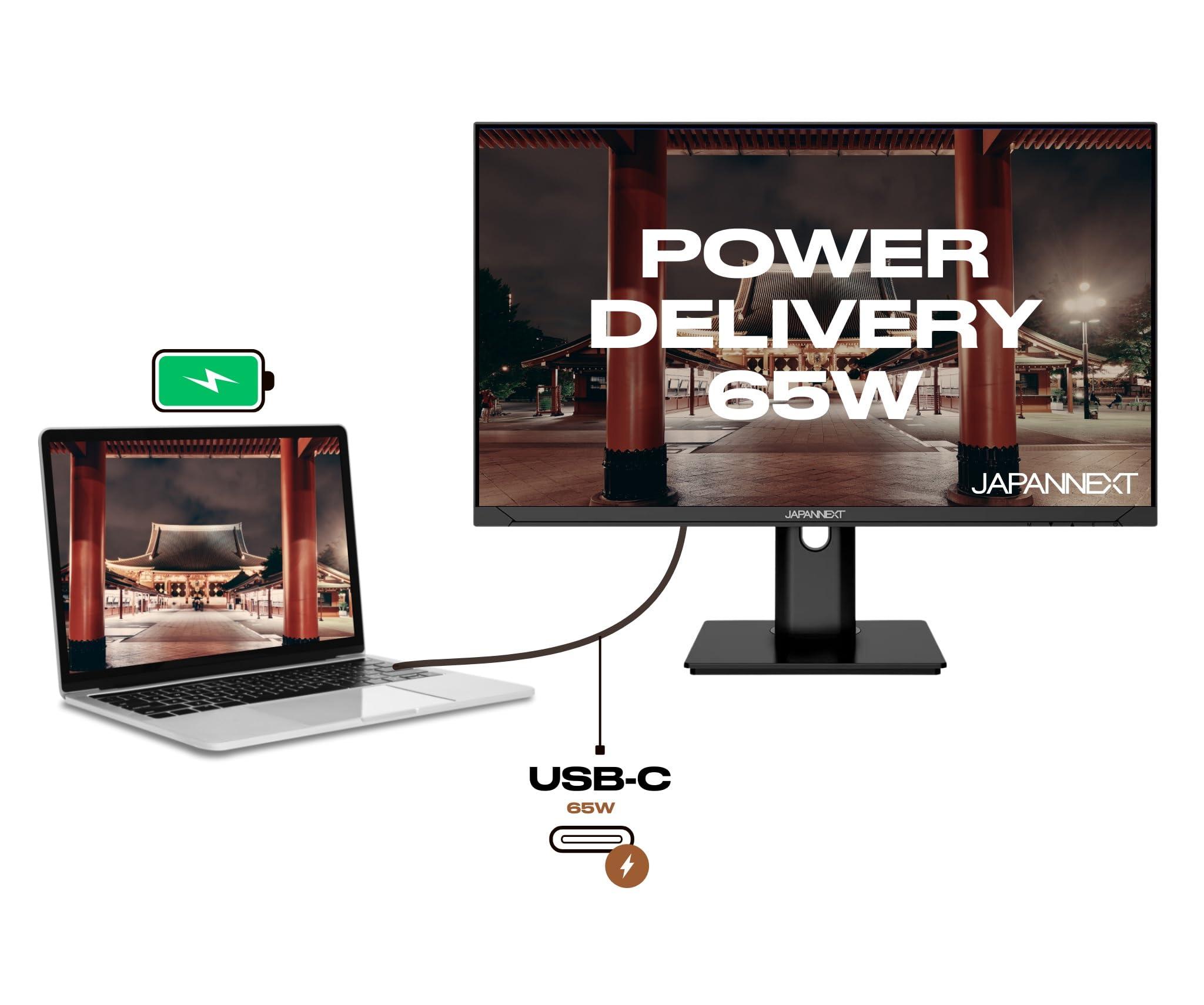 JapanNext Monitor 23.8" IPS Full HD (1920x1080) | HDR | Ricarica tramite USB-C (65W) Altezza e inclinazione regolabili (HSP) Altoparlanti | G-Sync/FreeSync | Garanzia 2 anni | JN-IPS238FHDR-C65W-HSP