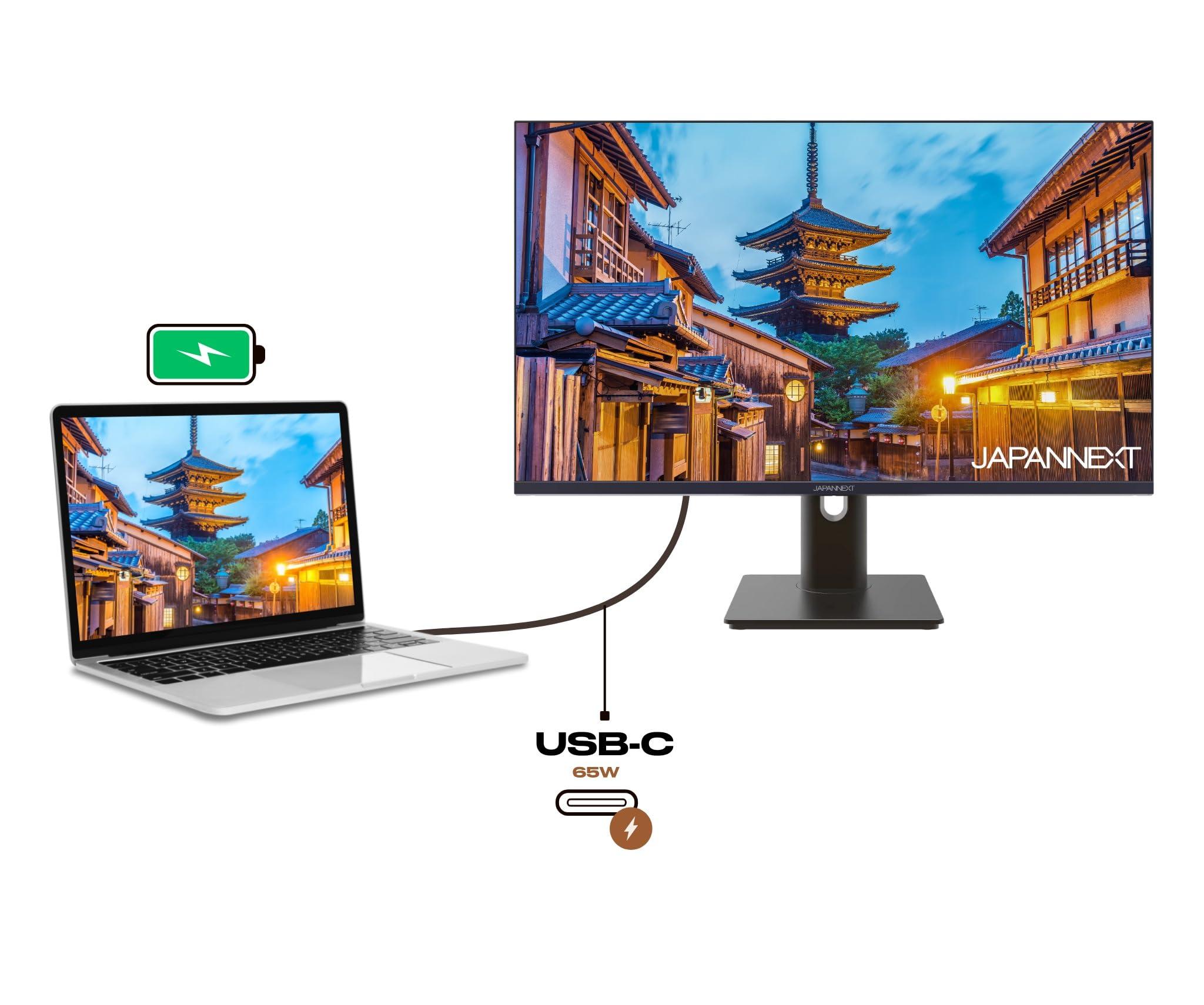 JAPANNEXT Monitor 27" IPS Full HD (1920x1080) | HDR | Ricarica tramite USB-C (65W) Altezza e inclinazione regolabili (HSP) Altoparlanti | G-Sync/FreeSync | Garanzia 2 anni | JN-IPS27FHDR-C65W-HSP