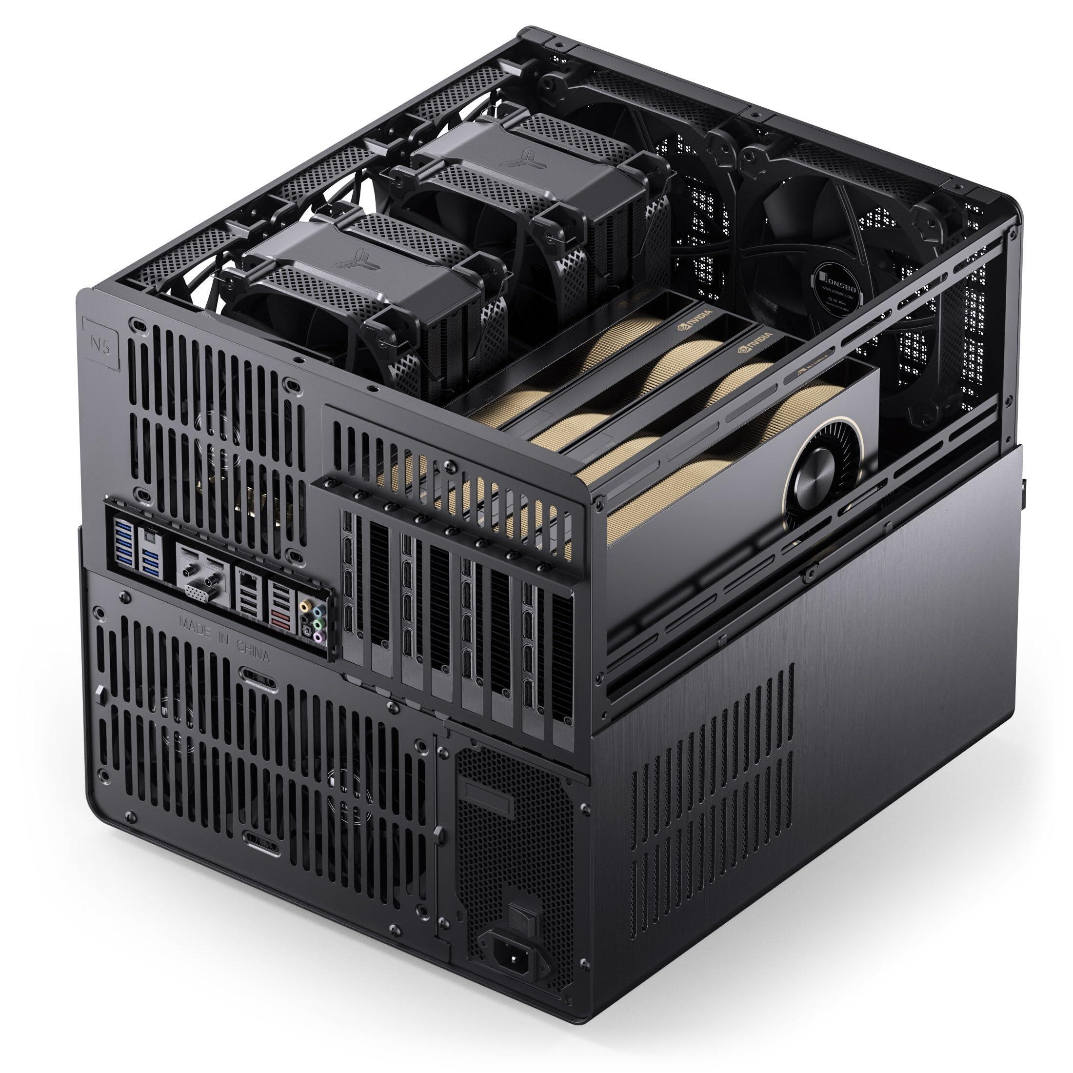 Jonsbo N5 NAS Case – Case a cubo E-ATX con spazio per 16 unità, 8 slot, design a rete, finitura in legno, USB-C, ideale per NAS e workstation, nero