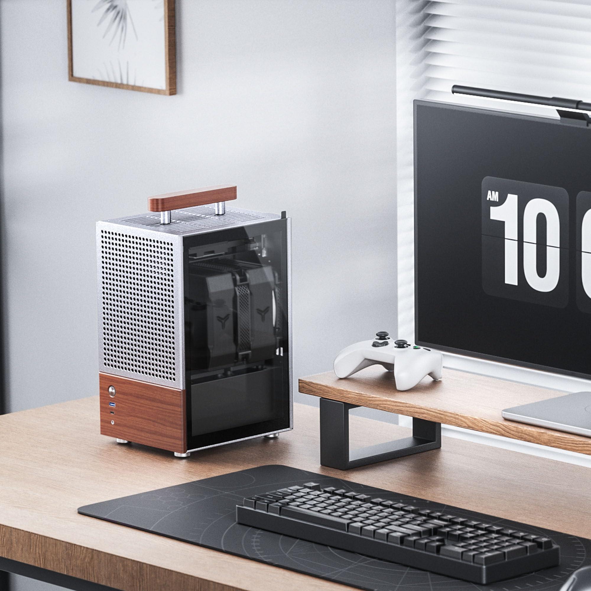 Jonsbo T6 Mini-ITX Case PC – Argento, vetro temperato e manico in legno, alluminio e acciaio, case mini-tower compatto