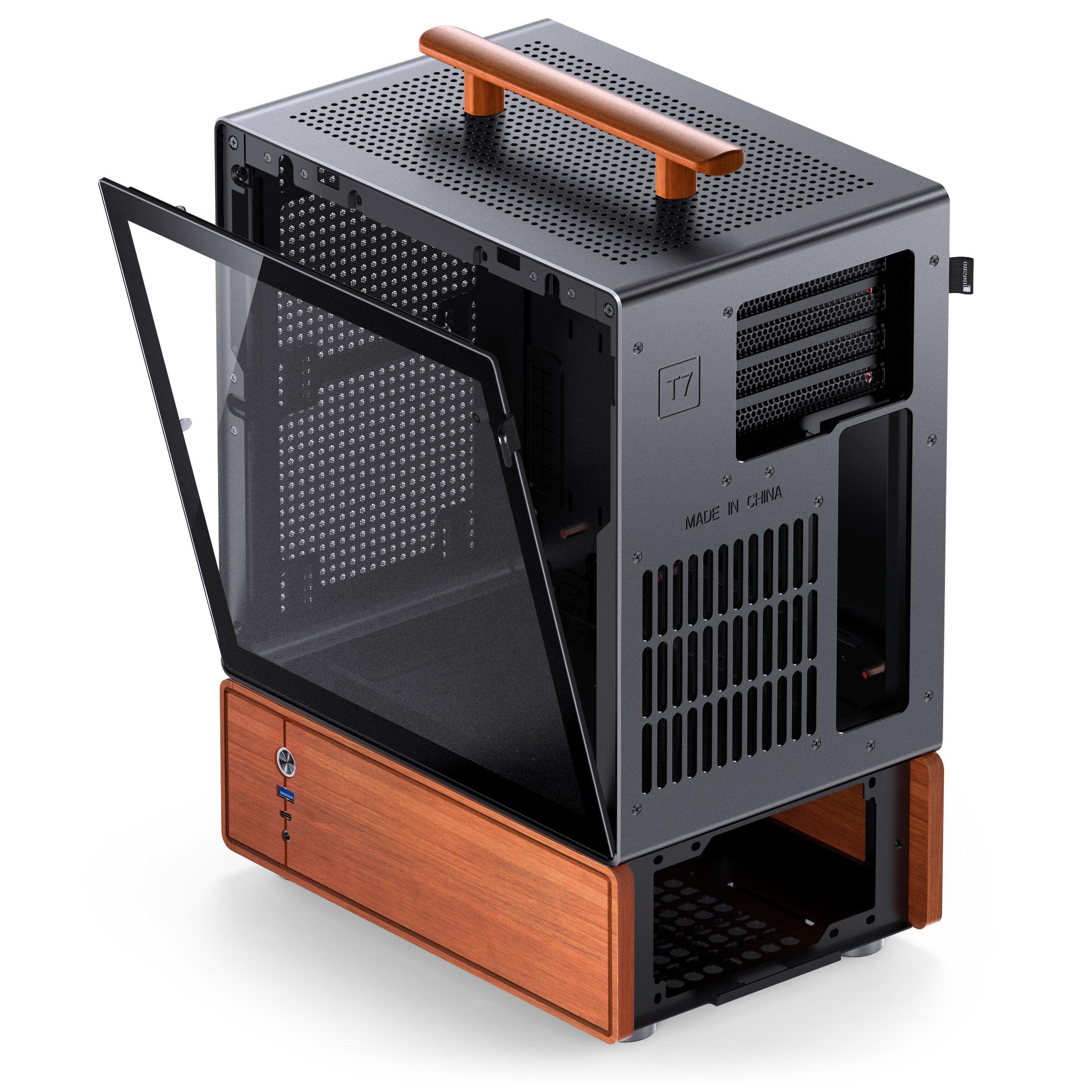 Jonsbo T7 Micro-ATX Case per PC – Nero | Case mATX con alluminio e manico in legno, vetro temperato, design a due camere, USB-C