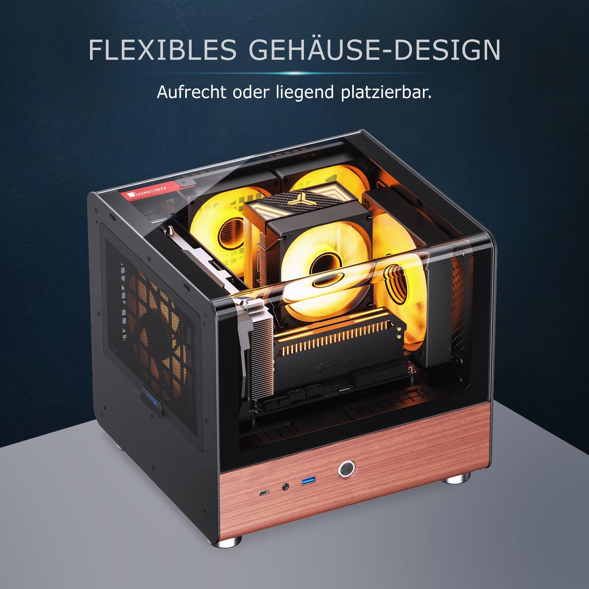 Jonsbo TK-0 PC Geh?use, Mini-Tower, Mini-ITX, Tempered Glass, Holz - schwarz