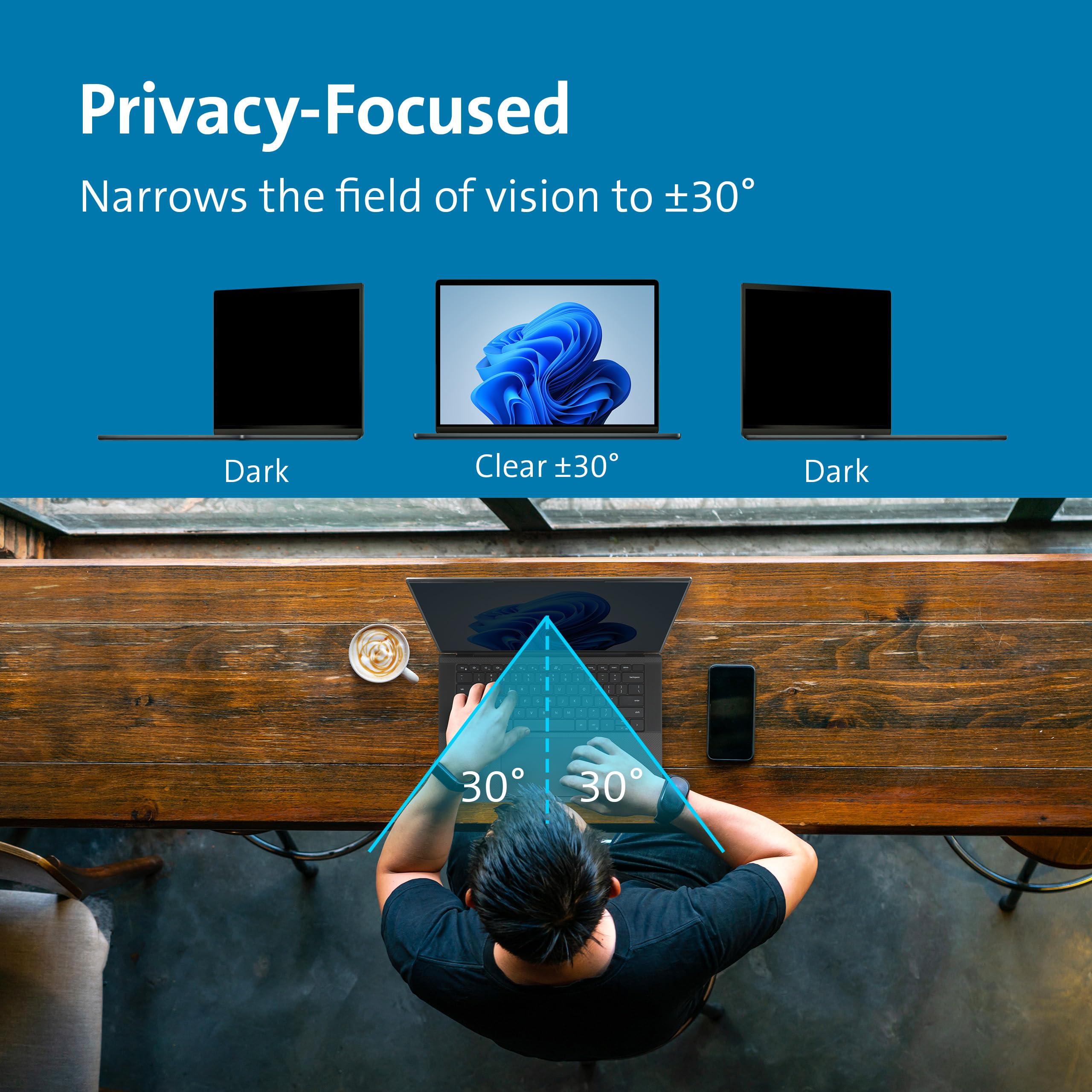 - Filtro per la privacy Kensington: restringe il campo visivo a ±30°, proteggendo le informazioni sullo schermo da occhi indiscreti e riducendo la possibilità di violazione dei dati