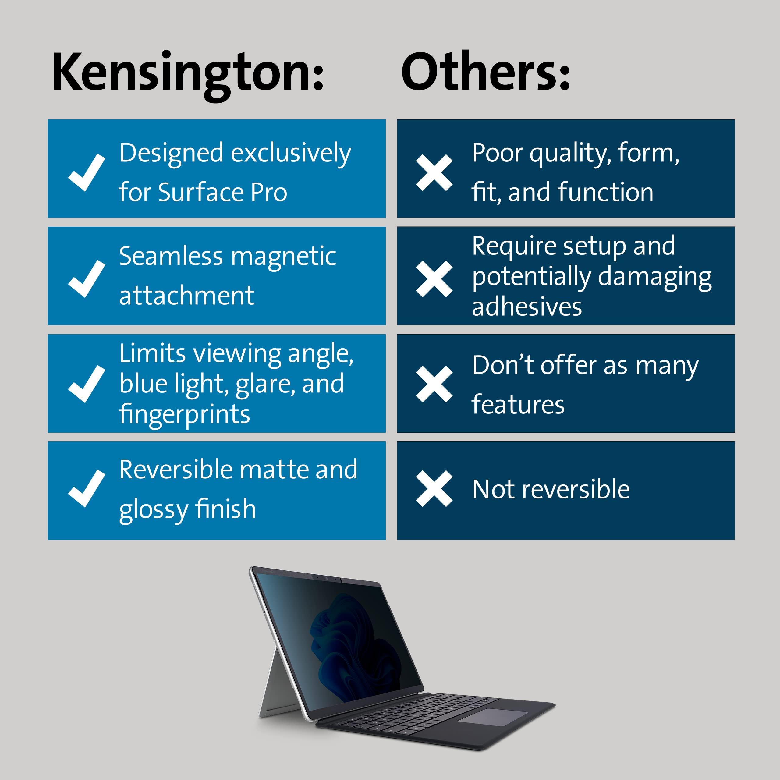 Kensington MagPro Elite per Surface Pro 8 Filtro Magnetico Rimovibile e Antiriflesso per la Privacy dello Schermo e la Riduzione della Luce Blu, Progettato Esclusivamente per Microsoft Surface