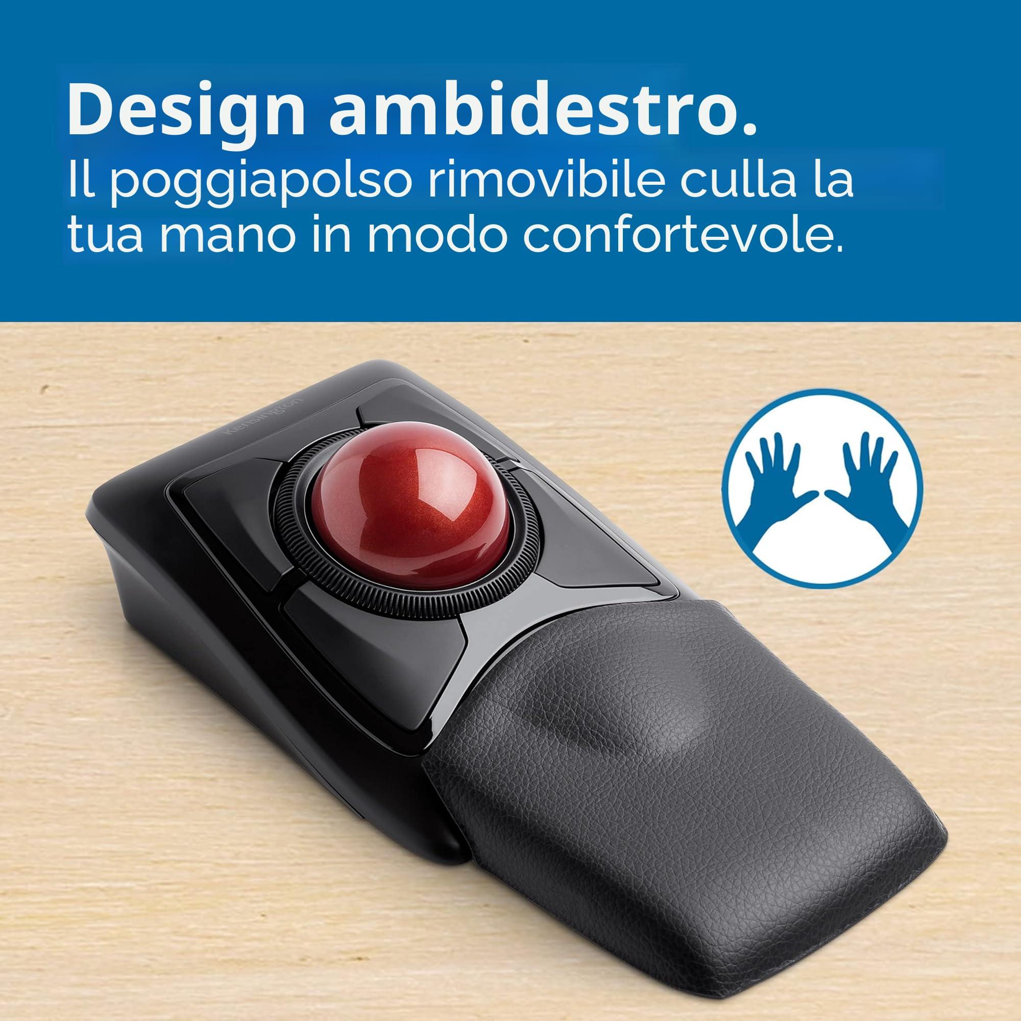 Kensington Mouse Expert Wireless Ergonomico con Trackball, per Mac E Windows, Design Ambidestro, Tracciamento Ottico, Rotella di Scorrimento & Sfera da 55 Mm, con poggiapolsi integrato, K72359WW, Nero
