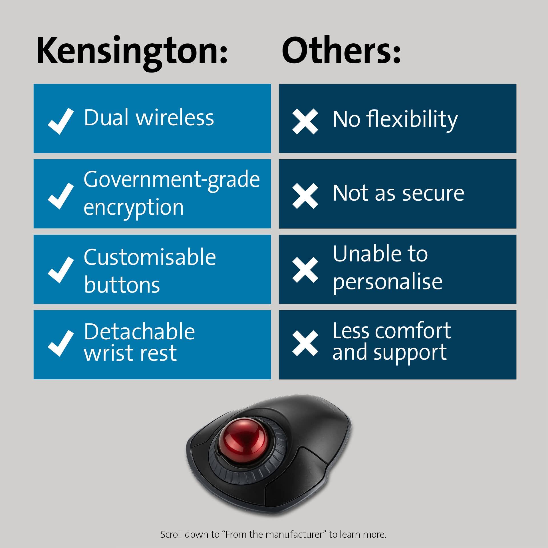 Kensington Mouse Trackball Orbit Wireless (2,4 GHz), Rotella di Scorrimento, Tracciamento Ottico e Sicurezza e Crittografia AES, Design Ambidestro, Sfera da 40 mm, Nero/Rosso (K70992WW)