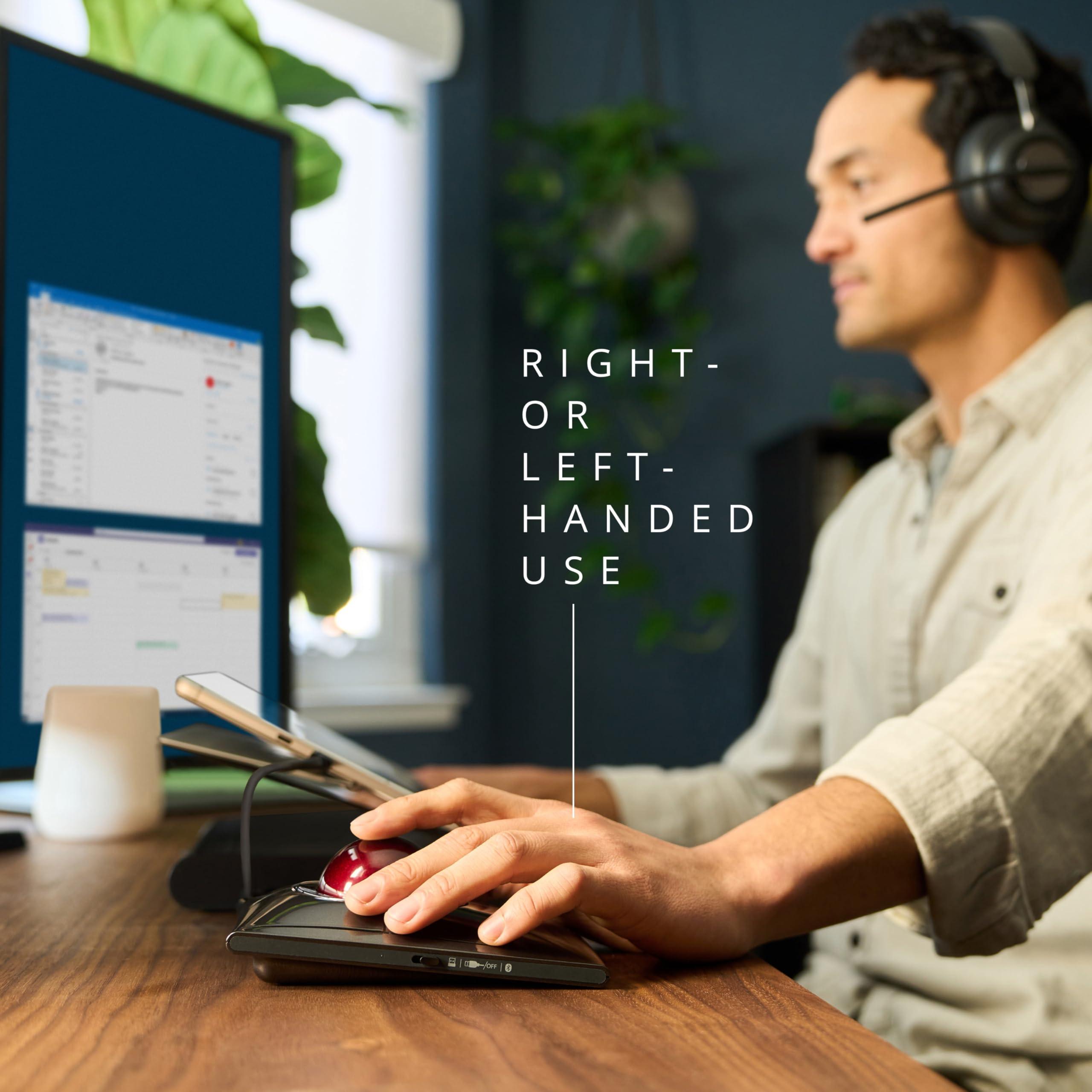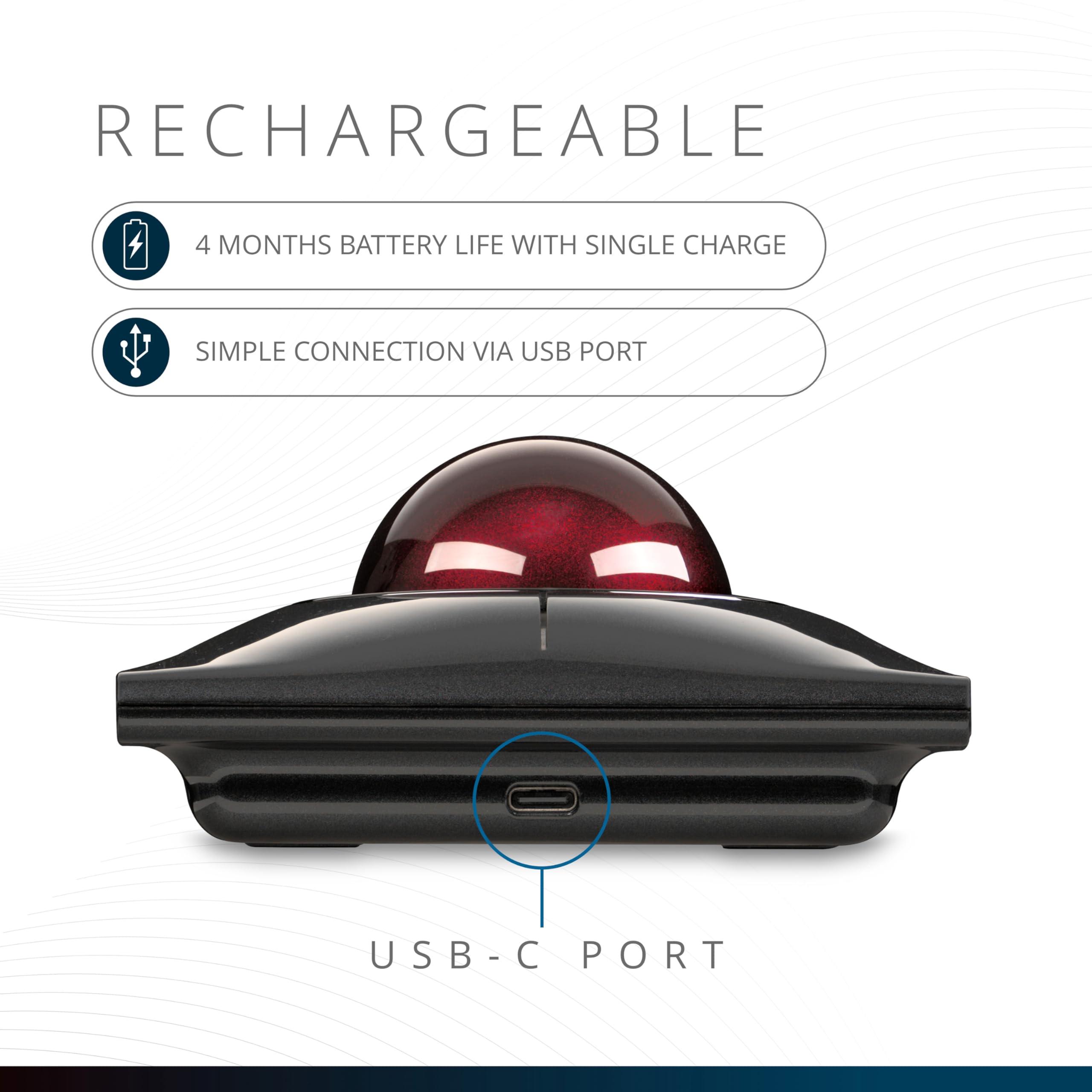 Kensington Mouse Trackball SlimBlade Pro Wireless, Bluetooth e Ricaricabile per Windows e mac OS, Design Ergonomico Ambidestro e Tracciamento Ottico, Sfera da 55 mm, Nero/Rosso (K72080WW)