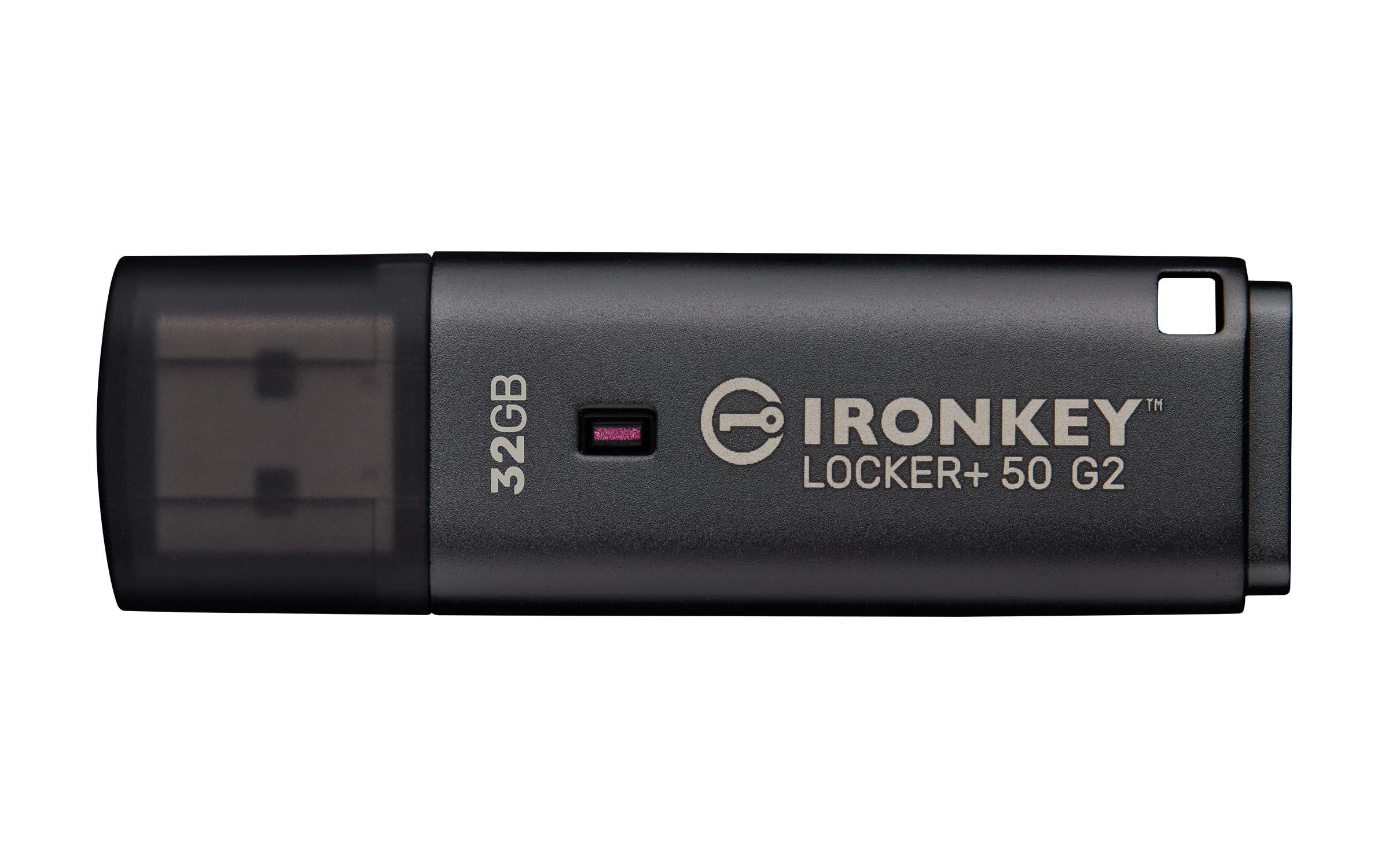 Kingston Ironkey Locker+ 50 G2 - Unità USB crittografata da 32 GB, FIPS 197, protezione AES-XTS | Sicurezza multi-password | USB 3.2 Gen 1 | IKLP50G2/32GB