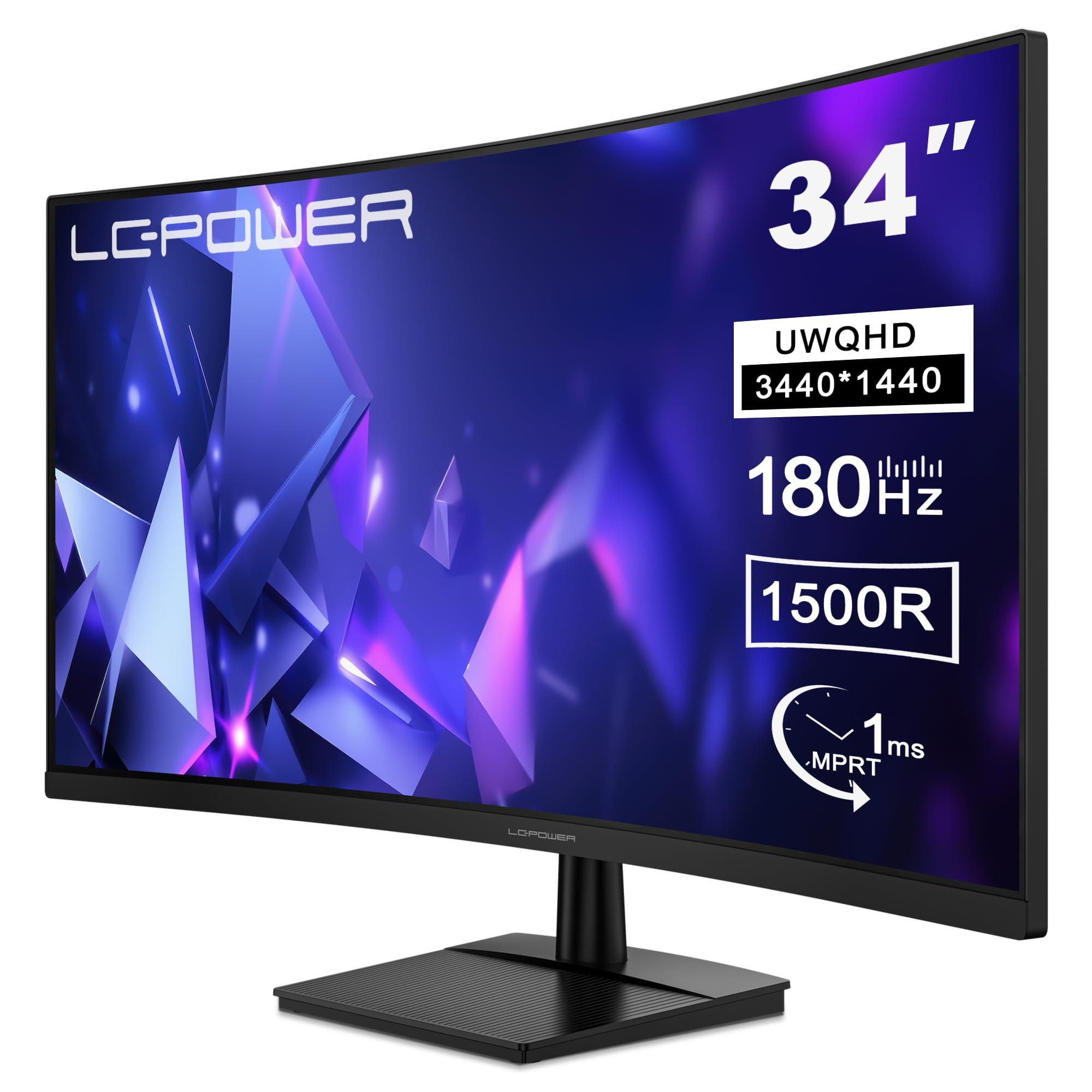 LC-Power LC-M34QC Monitor da gioco curvo 34 Zoll Ultrawide WQHD, 3440x1440 Display, 21:9, 1500R, 180Hz, 1ms MPRT, VA, HDR10, Adaptive Sync, 2xHDMI 2.0, 2xDP 1.4 [Classe di efficienza energetica F]
