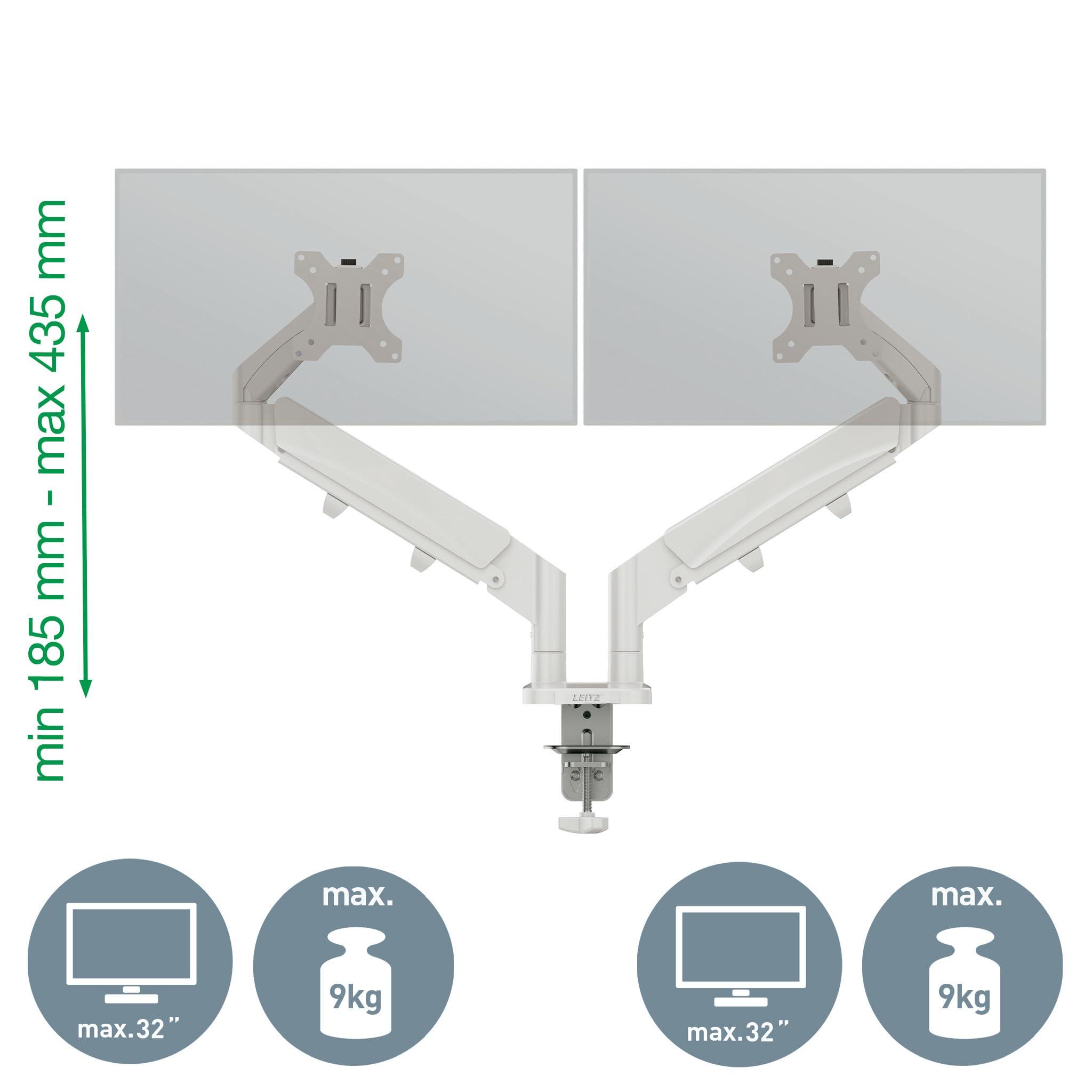 Leitz Supporto per Monitor doppio da 17'' a 32", Supporto da scrivania ergonomico con Rotazione Sinistra/Destra, Inclinazione e Capacità di Carico fino a 9 kg, Piastra VESA, Grigio Chiaro, 65370085