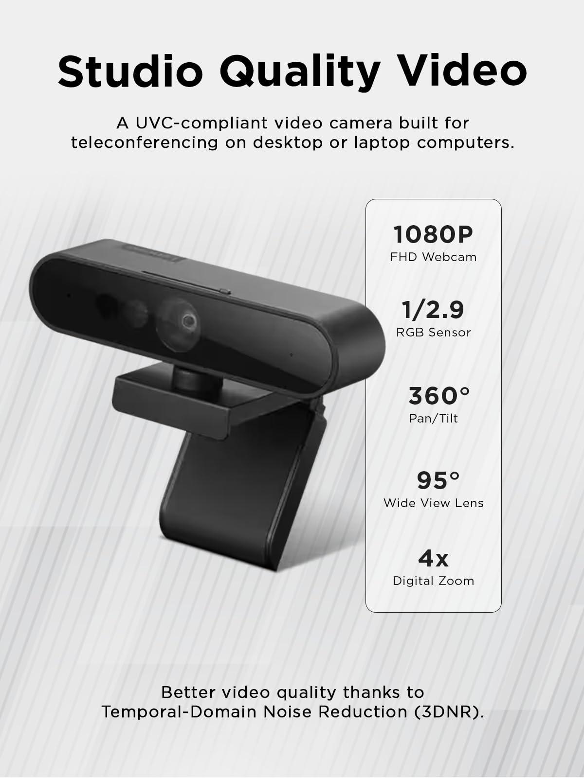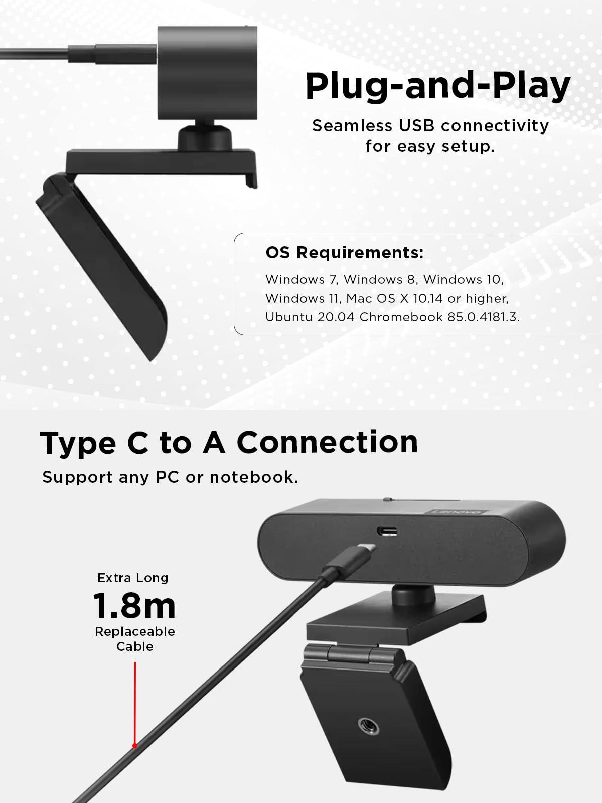 Lenovo FHD Webcam USB-C: Videocamera Full HD 1080P, Doppio Microfono Integrato per Videochiamate. Compatibile con Windows Hello 4.X. Include Cavo da 1.8 m, Privacy Shutter e Connessione Plug-and-Play