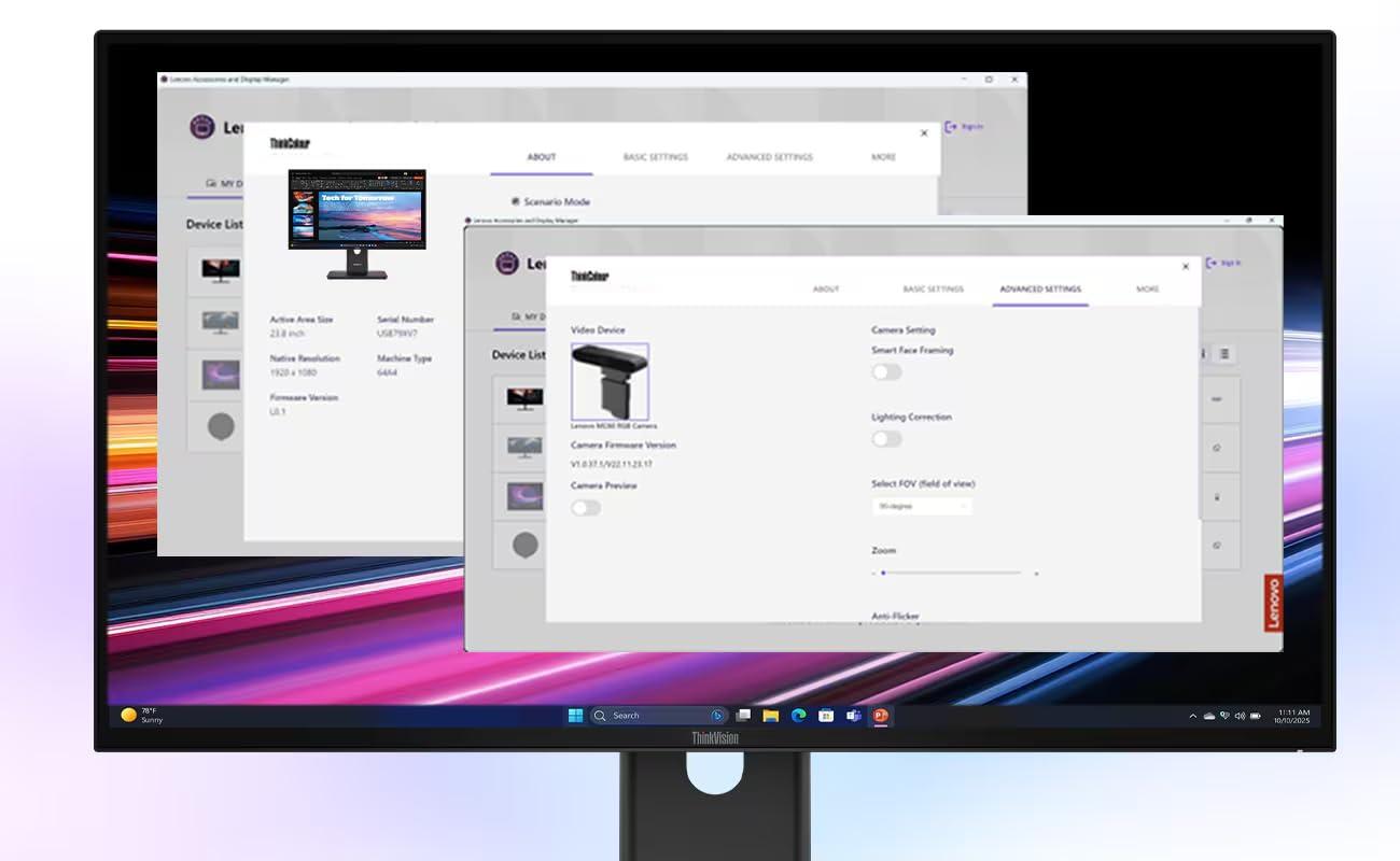 Un altro punto forte è la webcam ThinkVision VoIP Stack MC60 in dotazione. Si monta direttamente sul monitor ed è perfetto per le videoconferenze professionali. Nessun ingombro aggiuntivo sulla scrivania, senza cavi: una soluzione moderna e pulita per lavorare in remoto.