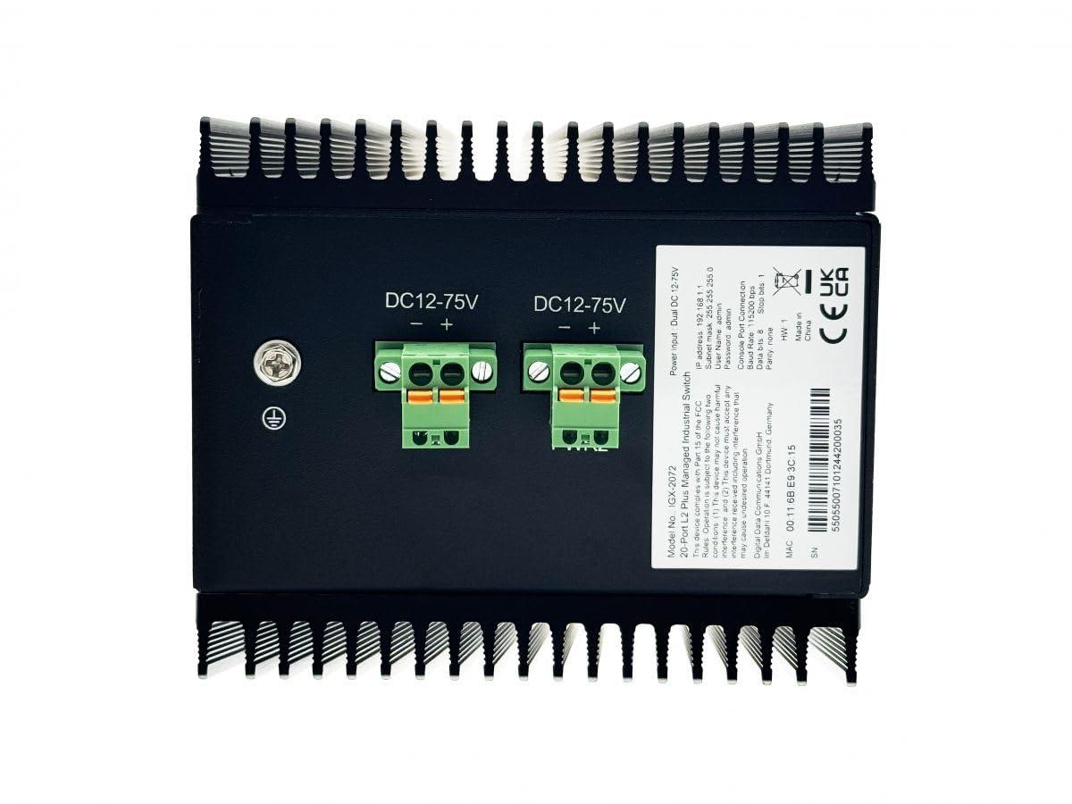 - Garantisce un funzionamento affidabile con alimentazione ridondante da 12-75 V DC, protezione da sovratensione avanzata (6 KV) e protezione ESD (scarica dell'aria 15 kV, scarica da contatto 8 kV).