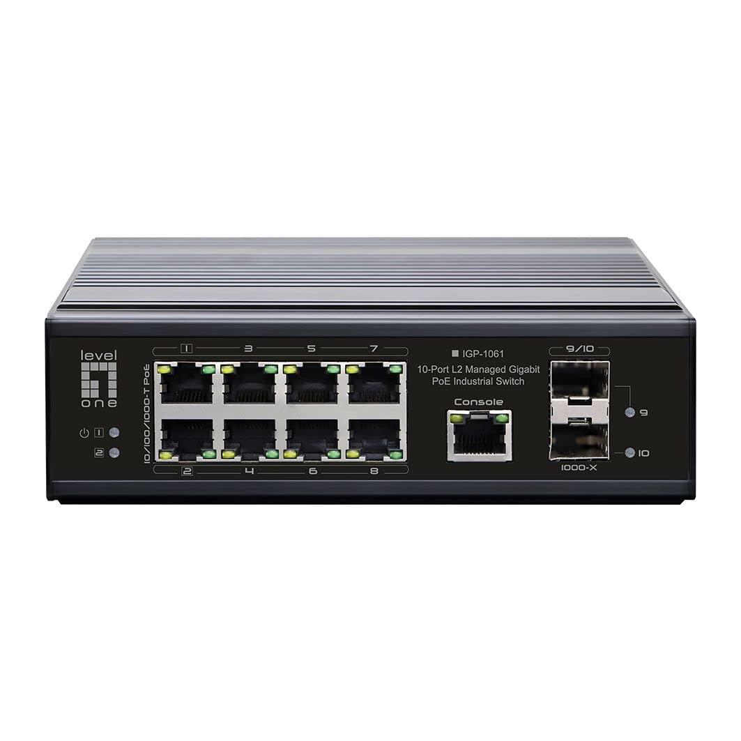 LevelOne IGP-1061 - Switch Industriale a 10 Porte L2, gestito Gigabit Poe, 802.3AT/AF/BT Poe, DIN-Rail, da -40°C a 75°C